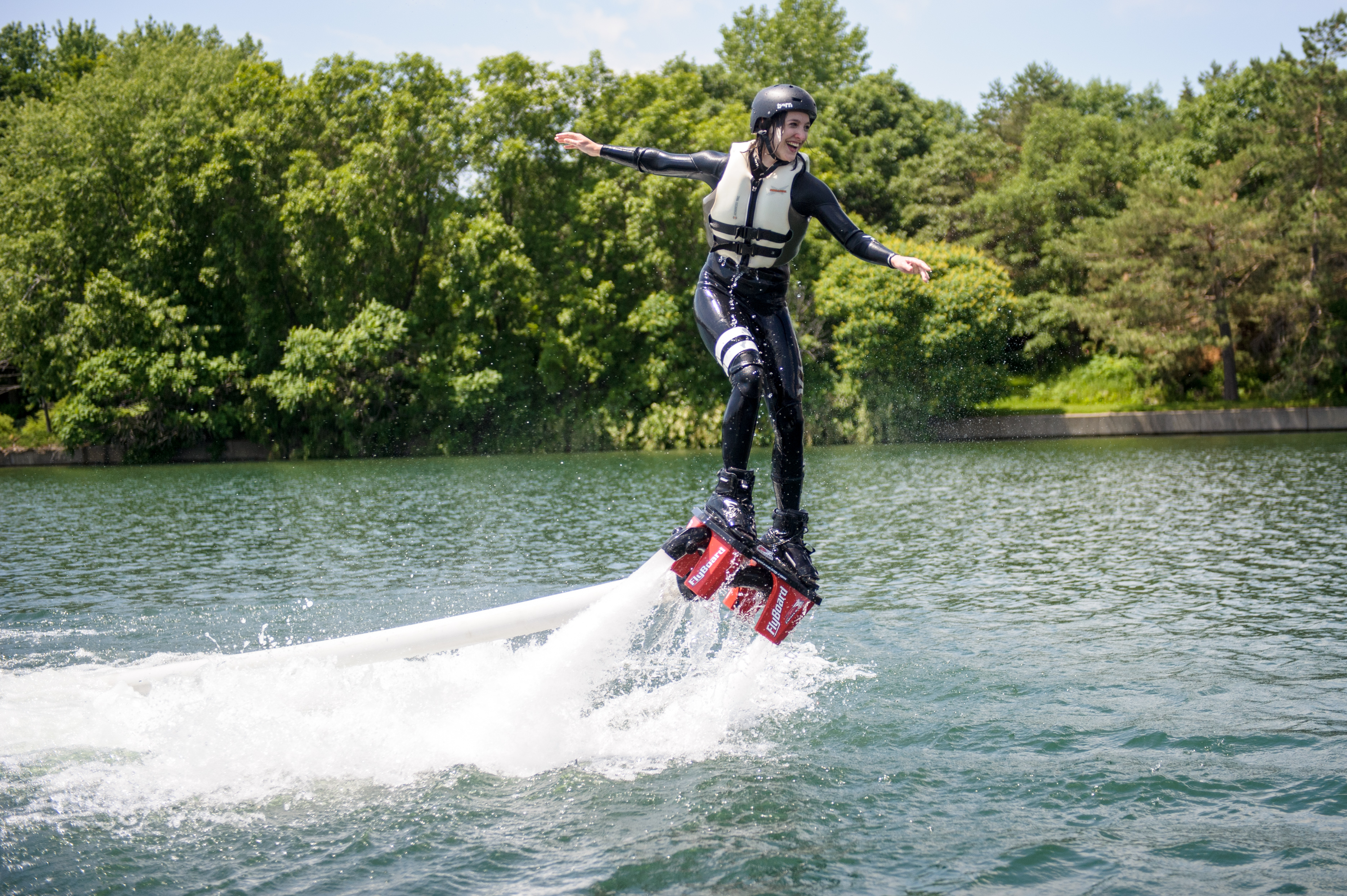 L’activité nautique, accessible depuis ce week-end aux abords du parc Jean-Drapeau, est offerte au coût de 129,99$ pour 5 minutes d’envol par FlyQuebec. Pour sa première saison, l’entreprise propose toutefois le même forfait à 49,99$. Des vols prolongés sont aussi disponibles à prix plus élevés.