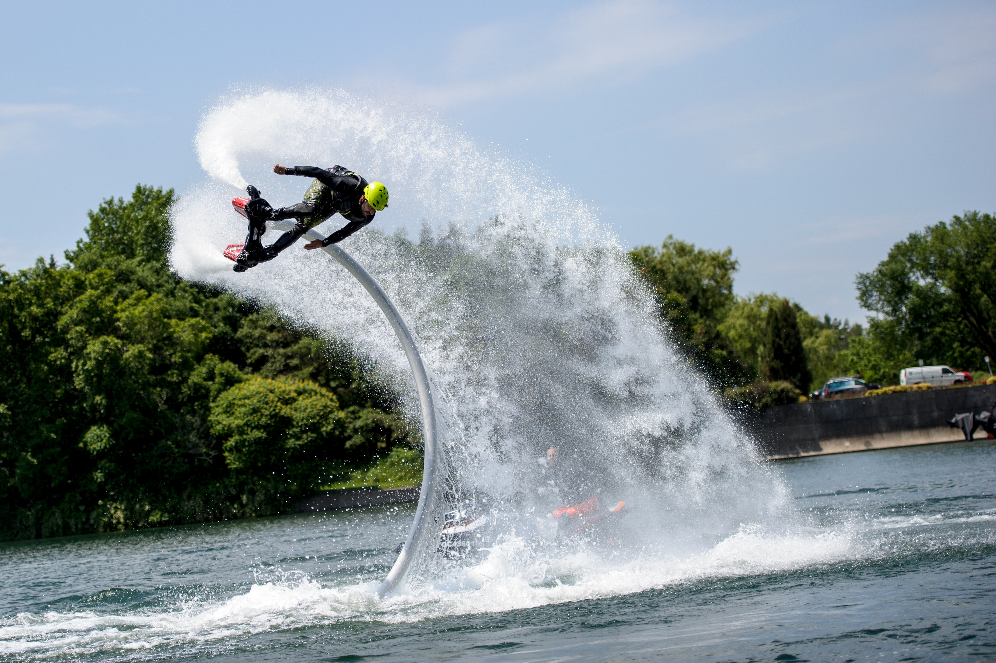 Pour essayer le flyboard, il faut faire une réservation au flyquebec.ca/forfait-parc-jean-drapeau.
