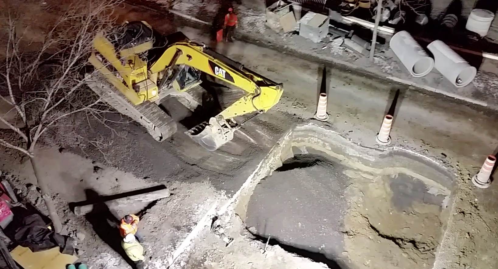 La Ville indique avoir averti le contracteur deux semaines plus tôt que l’utilisation d’une scie ou d’un marteau piqueur en pleine nuit était interdite. Elle nous a assuré du même souffle et que de tels gestes ne s’étaient pas reproduits depuis le 6 novembre. La première vidéo prouve le contraire.