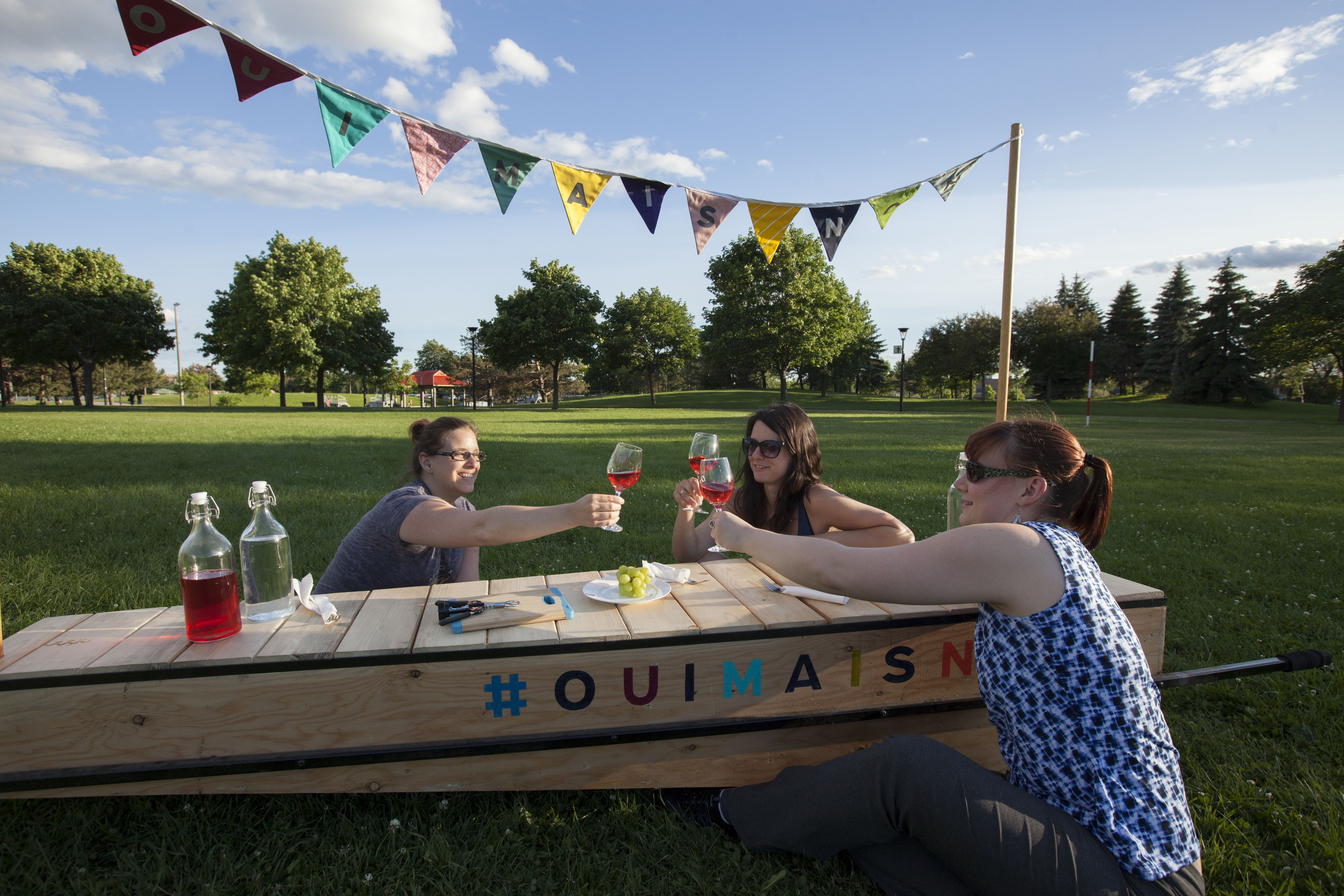 Frisbee, ballons, coupes, vaisselle, nourriture et même du thé: pique-niquer au parc Jarry prend une nouvelle tournure avec l’arrivée de la brouette du café Oui mais non.