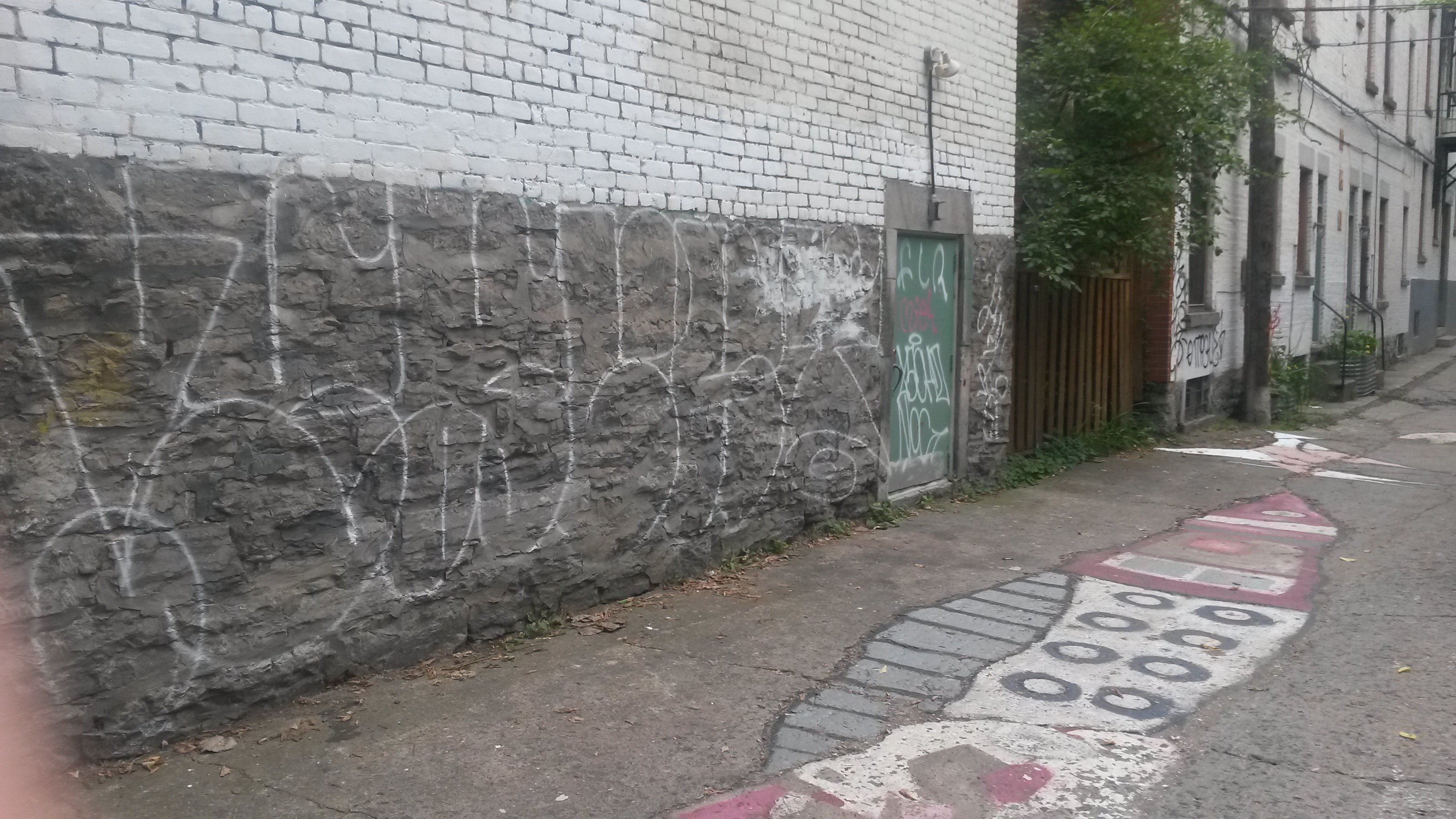 Tel que le Journal Le Plateau le rapportait en août 2014, des problèmes récurrents de graffitis sont observés à cet endroit. Pour tenter de lutter contre ce fléau, le comité de la Fête des voisins avait payé un muraliste pour embellir les lieux et des citoyens peignaient sur le bitume pour les mêmes raisons.