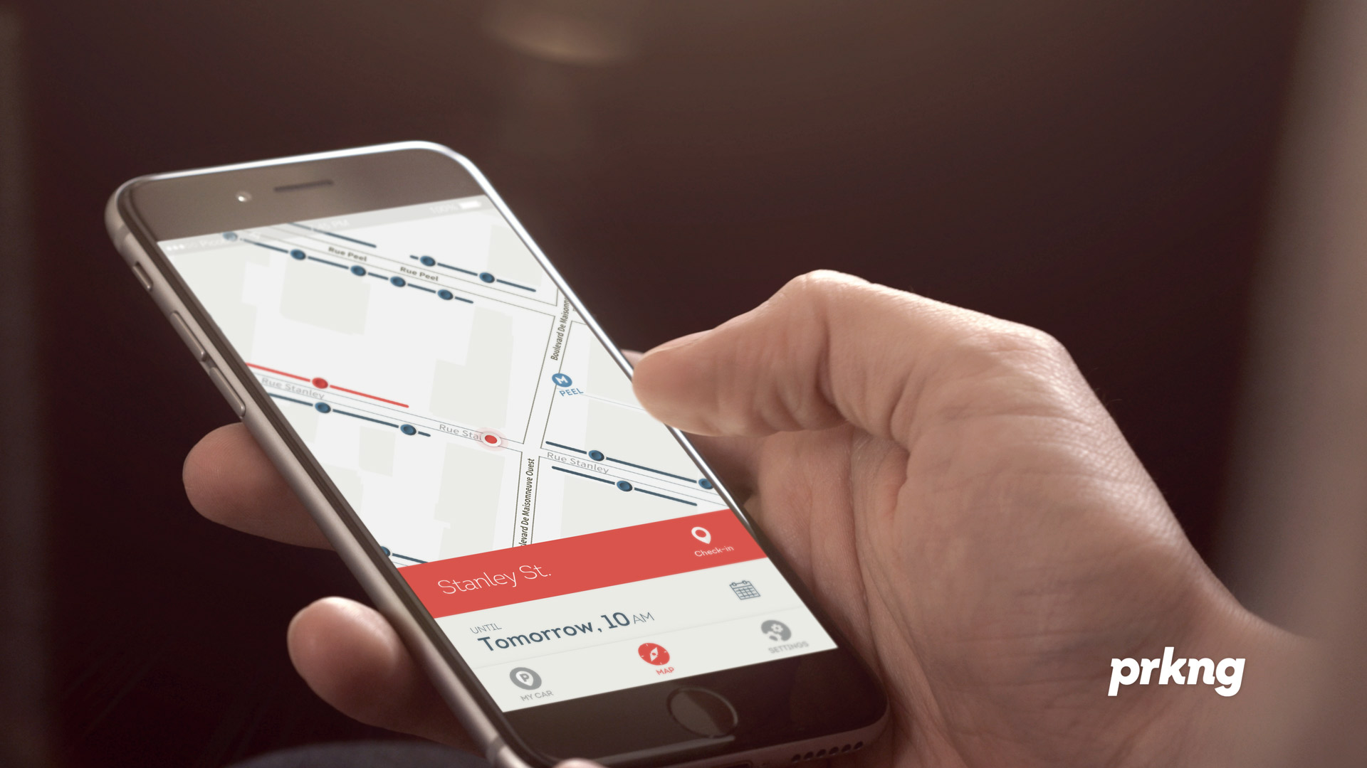 L’application Prkng, disponible sur App Store seulement, montre aux utilisateurs quels sont les tronçons de rue environnant où le stationnement est autorisé. On peut ensuite enregistrer l’endroit où on a laissé sa voiture. Une notification est envoyée lorsqu’on se trouve dans l’obligation de la déplacer.