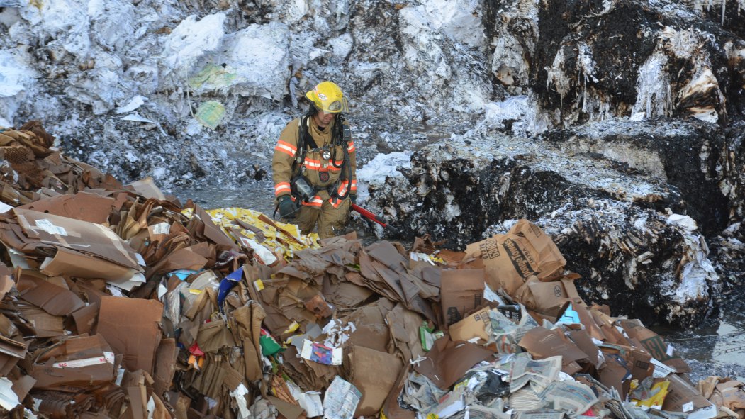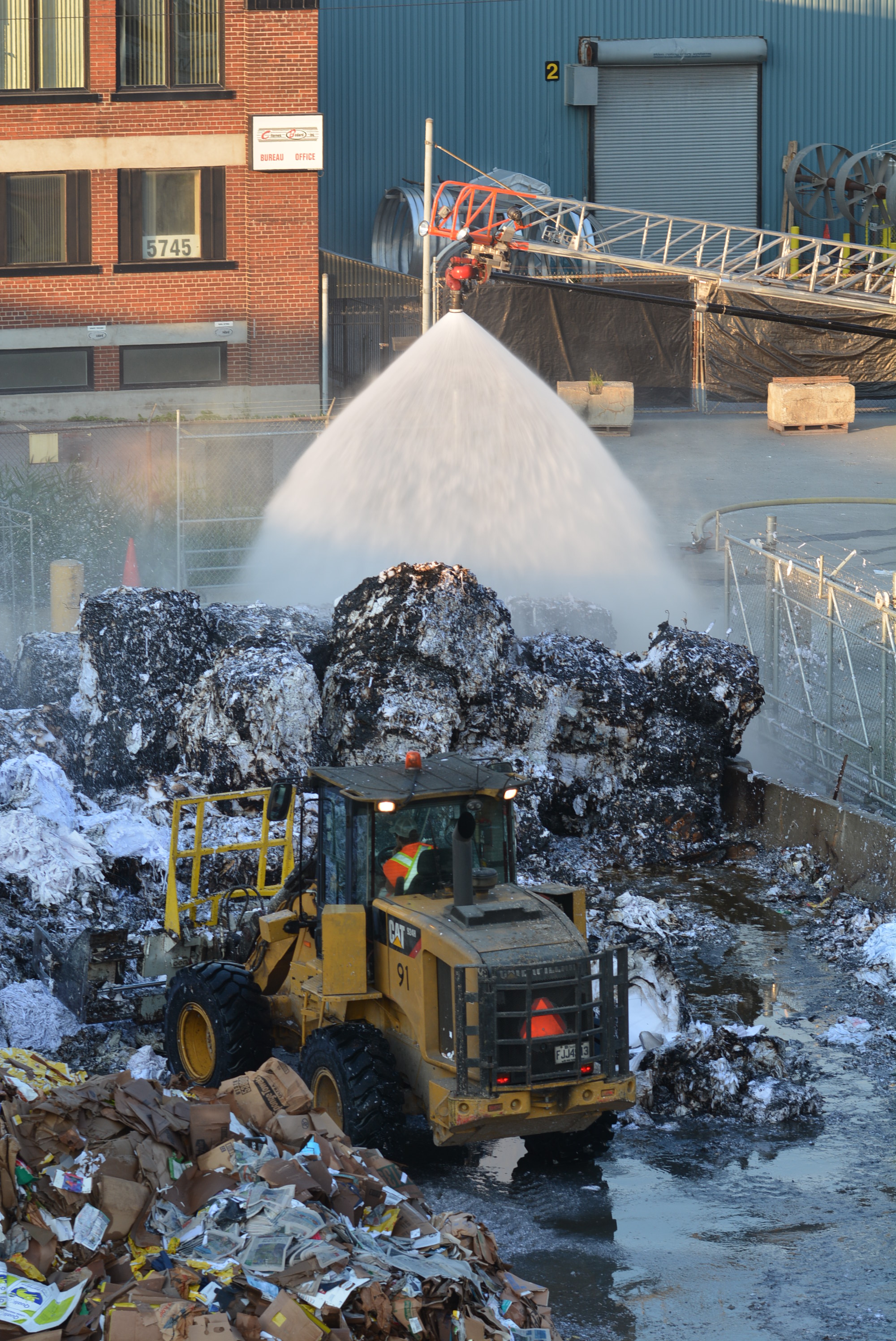 Un incendie dans des ballots de cartons entreposés dans la cour arrière de l’usine Kruger en bordure de l’autoroute 20 dans l’arrondissement Sud-Ouest a nécessité l’intervention de 31 pompiers le mardi 28 juillet.