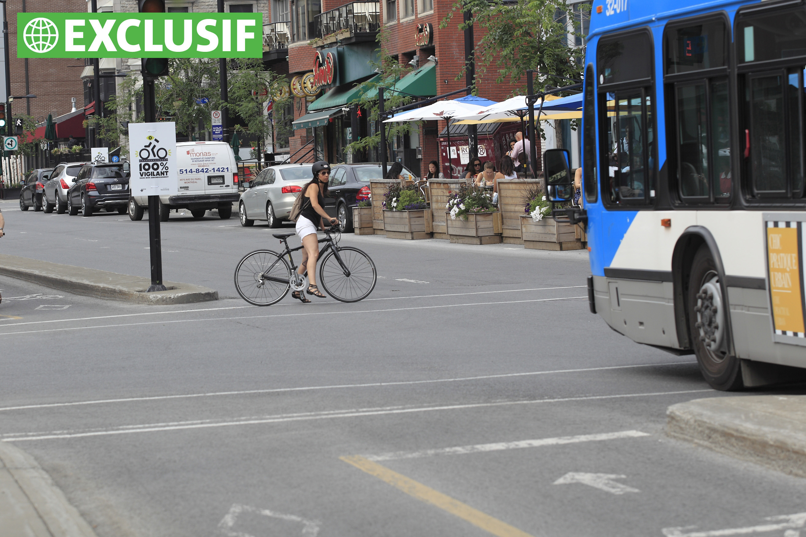 «On n’a pas les infrastructures pour cohabiter. Et ce n’est pas une petite ligne au sol qui va régler le problème.» Il ajoute qu’à certains endroits, les autobus n’ont d’autre choix que de couper la piste cyclable pour faire leur arrêt.