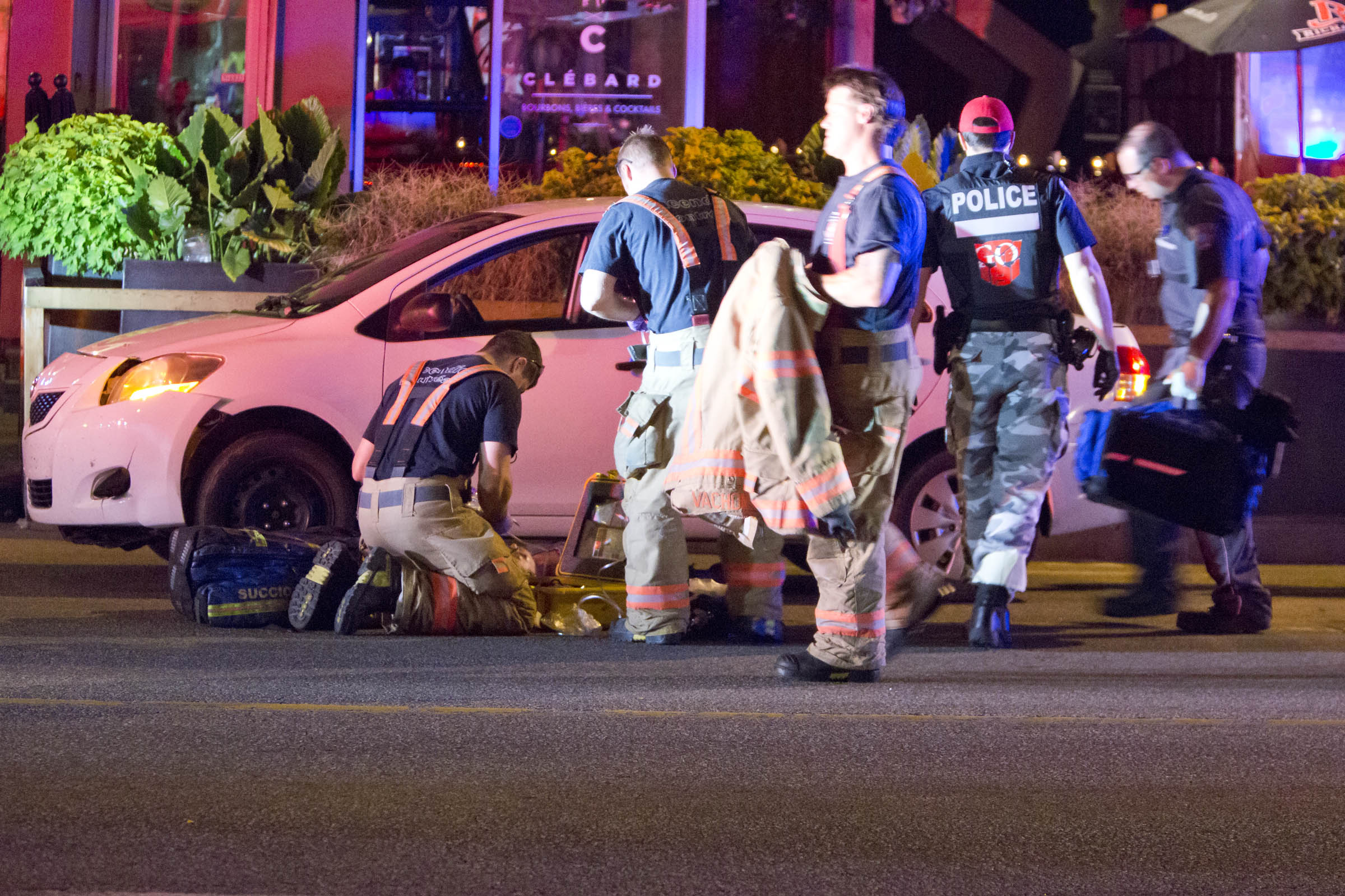Elle a été projetée par terre à la suite de l’impact pour ensuite être frappée par un autre véhicule qui roulait en direction nord.