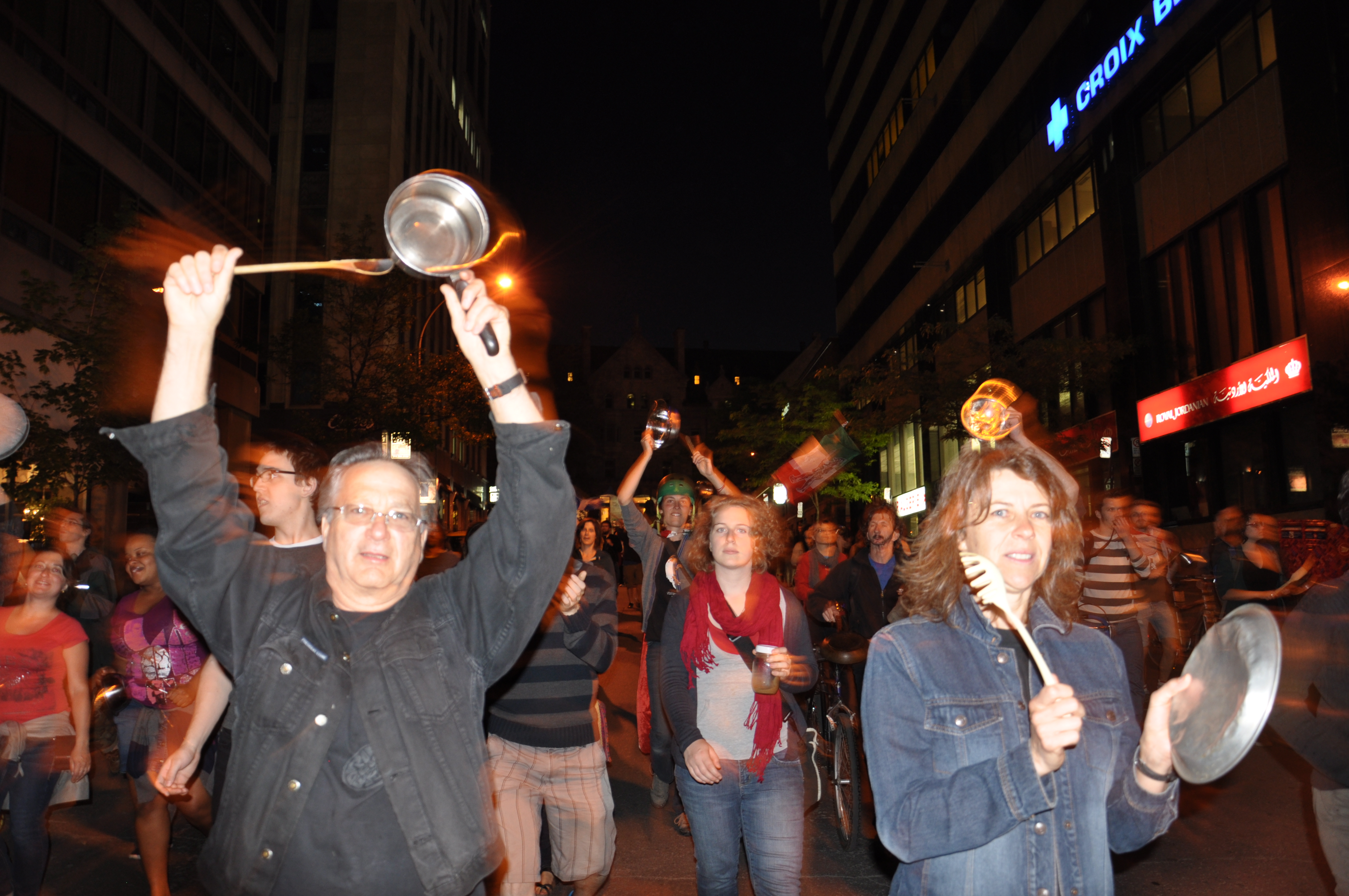 Dans le parc, les manifestants semblaient fâchés des nouveaux développements de la crise sociale. L’un d’entre eux, Frédéric Pépin, appuyait la controversée hausse des droits de scolarité avant de rejoindre les «casseroleurs» car il pense que le gouvernement Charest a pris une «mauvaise décision» en n’oeuvrant pas plus fort pour conclure une entente avec les groupes étudiants.