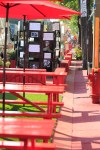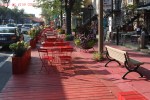 La grande terrasse rouge a été aménagée pour tenter de diminuer les effets qu’aura le chantier qui s’amorcera le 8 septembre sur Saint-Denis, pour les 16 prochains mois. Le projet émane d’un partenariat entre la Société de développement pignons rue Saint-Denis et la Ville de Montréal. L’ensemble des travaux représentent un investissement de 14,4M$.