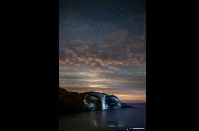 Grâce à sa technique, Clément Lesaffre peut aussi projeter des visages sur des falaises ou des éléments d’architecture sur une hauteur de plus de 25 mètres.