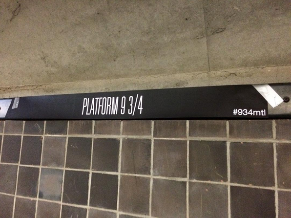 Jeudi après-midi, des cartons indiquant «Platform 9 3/4» ont été collés dans toutes les stations de la ligne bleue du métro entre Snowdon et Jean-Talon.