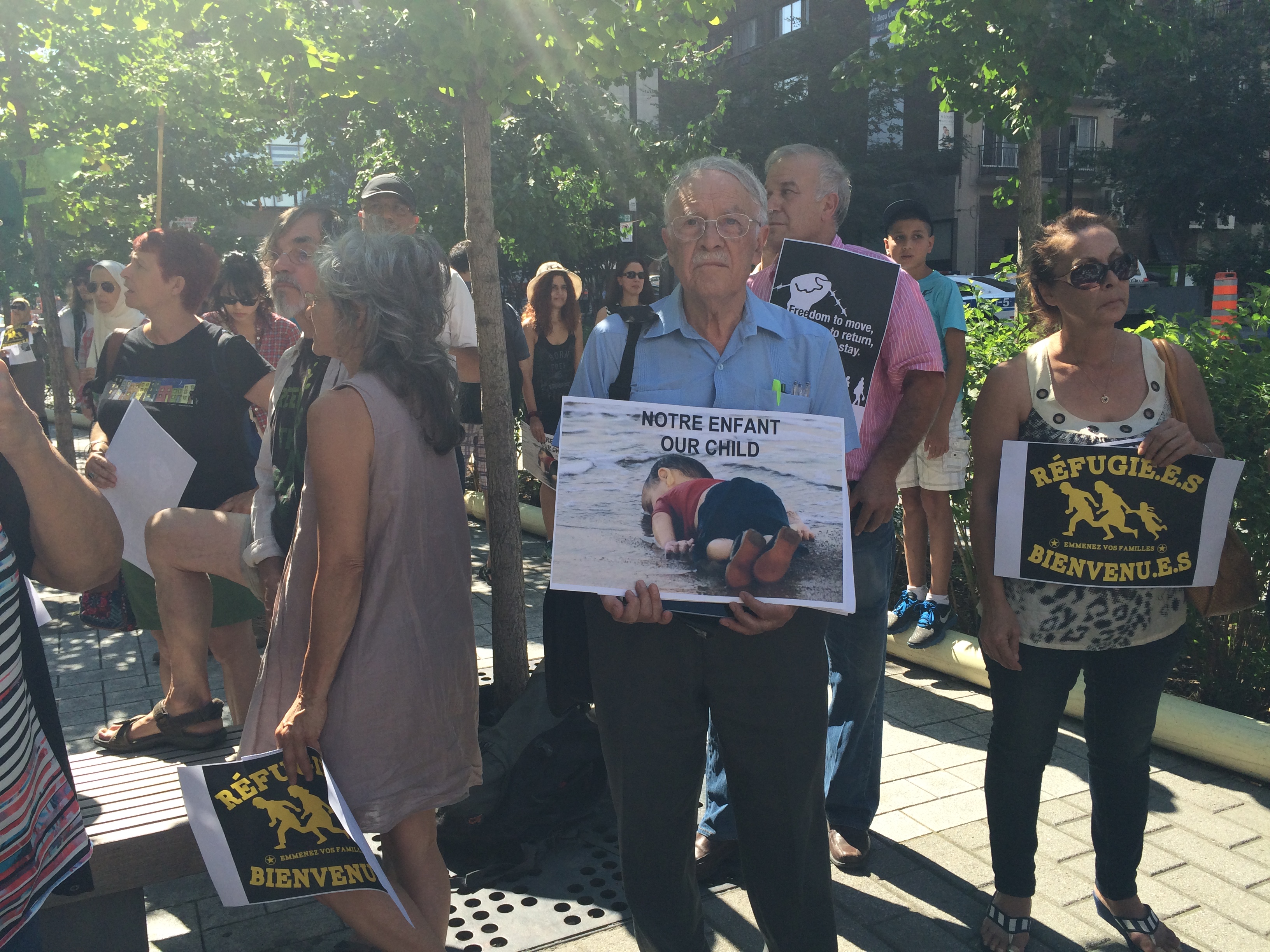 «On a besoin de dire bienvenue aux réfugiés comme l’Europe est en train de le faire. Et on est ici pour dénoncer la complicité du gouvernement Harper avec les morts de la famille Kurdi», a scandé Jaggi Singh, un des organisateurs, faisant référence à la photo du petit garçon syrien de trois ans mort, sur une plage de Turquie, qui a ému le monde entier cette semaine et ramené à l’avant-plan le débat sur les migrants.
