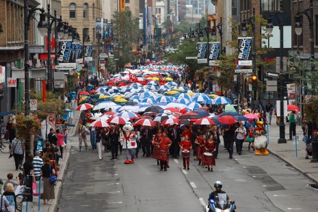 Environ 20 000 participants ont pris part hier, au centre-ville de Montréal, à la Marche aux 1000 parapluies de Centraide. L’événement donnait le coup d’envoi à la 41e campagne de l’organisme, qui vise à amasser des fonds pour lutter contre la pauvreté. L’opération se terminera à la fin décembre.