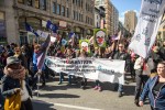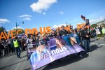 Pas moins de 225 autobus avaient été nolisés pour permettre à des travailleurs de partout au Québec de participer à la grande manifestation, organisée par le front commun, regroupant les principaux syndicats de la fonction publique au Québec.