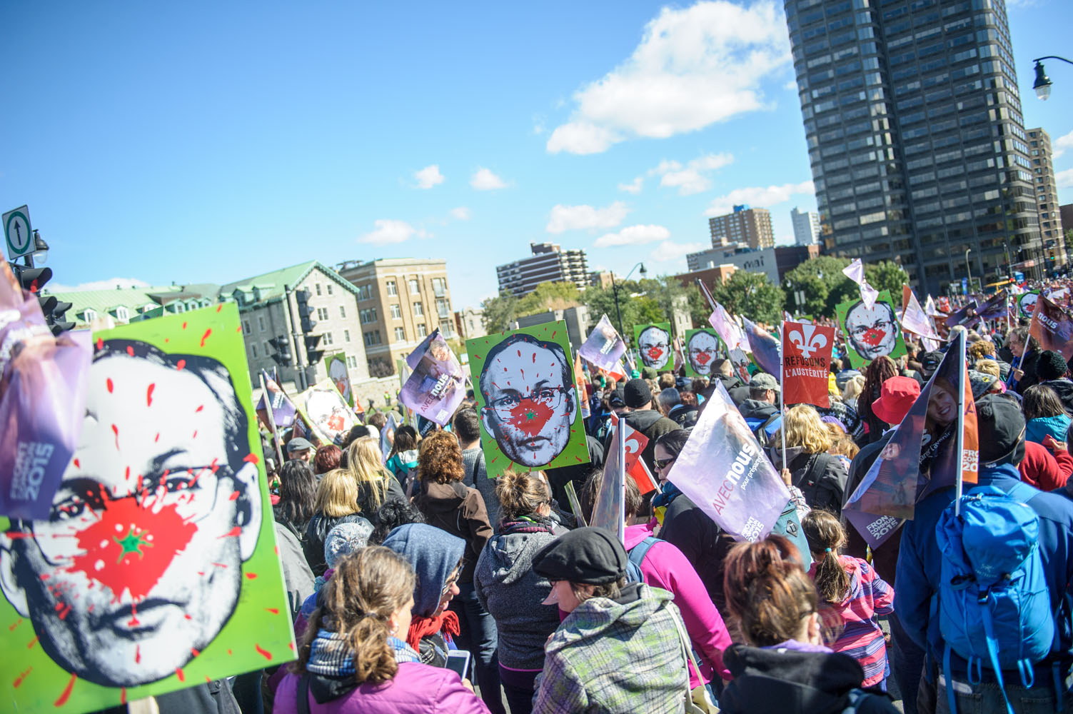 La manifestation festive, qui avait aussi pour but de dénoncer les mesures d’austérité du gouvernement libéral, a débuté vers 12h30 au pied du mont Royal. Les marcheurs se dirigeaient vers les bureaux du premier ministre, Philippe Couillard, au centre-ville.