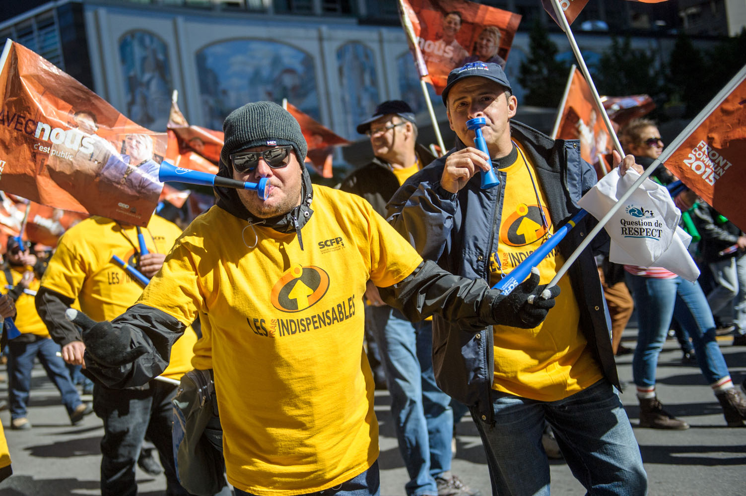 Des dizaines de milliers de travailleurs du secteur public ont déferlé dans les rues de Montréal pour mettre de la pression sur le gouvernement dans le cadre des négociations pour le renouvellement de leurs conventions collectives.