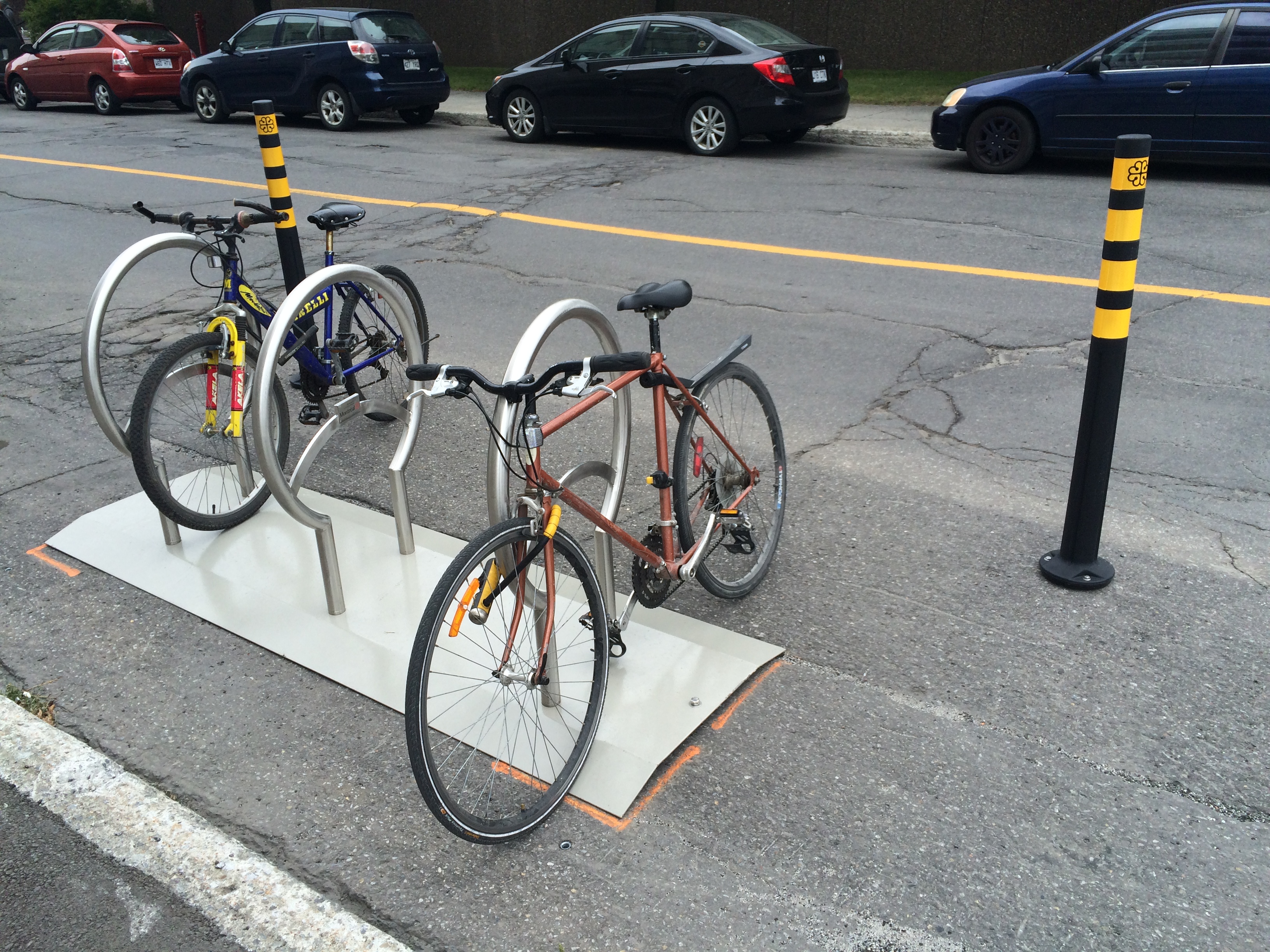 Marc-André Gadoury, élu de l’Équipe Coderre, a dit espérer que les prochains stationnements pour deux roues soient installés au printemps et non en automne, comme c’est le cas actuellement. Il a également déploré la qualité de certains supports, déjà brisés.