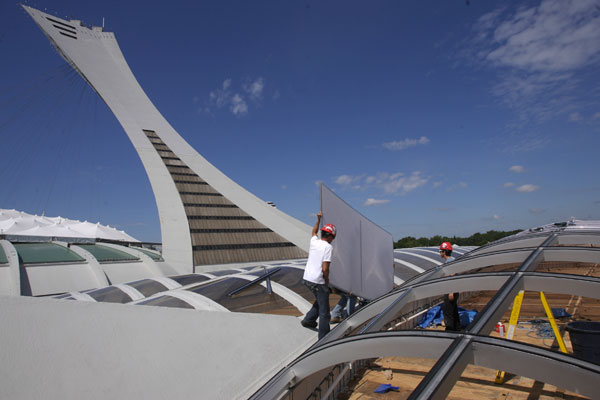 - L’ancien vélodrome compte 58 lanterneaux en acrylique. Vieux de 40 ans, ils sont progressivement changés depuis 2003. Avec ces nouvelles fenêtres, en polycarbonate, notamment utilisé dans l’aviation, la pénétration de la lumière est beaucoup plus importante, au point où cela a entraîné de nouvelles floraisons. Même la qualité des algues du bassin de l’écosystème du golfe du Saint-Laurent s’en est ressentie.