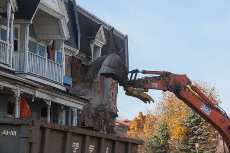 Les travaux de démolition des résidences victoriennes de la rue May avancent à pas de géant. En tout juste une semaine, six maisons ont été réduites en poussières. Dans certains cas, il ne reste plus qu’à en retirer les fondations.