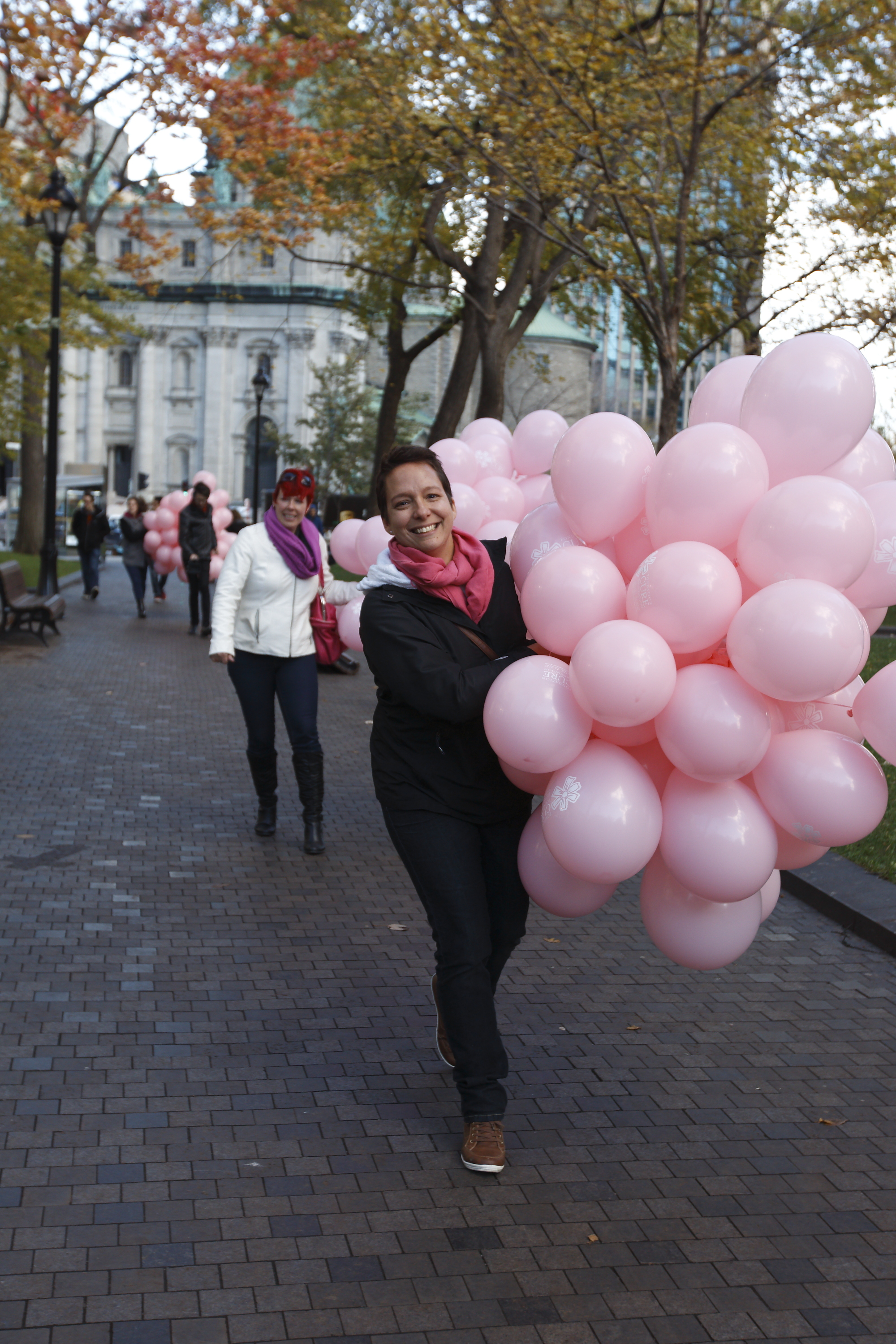 Si vous avez aperçu des ballons roses au centre-ville de Montréal jeudi, c’était pour souligner le mois de la sensibilisation au cancer du sein. Dans la cadre de sa campagne de financement Ballons de l’espoir», la Fondation CURE a distribué 500 ballons contenant un message d’espoir.