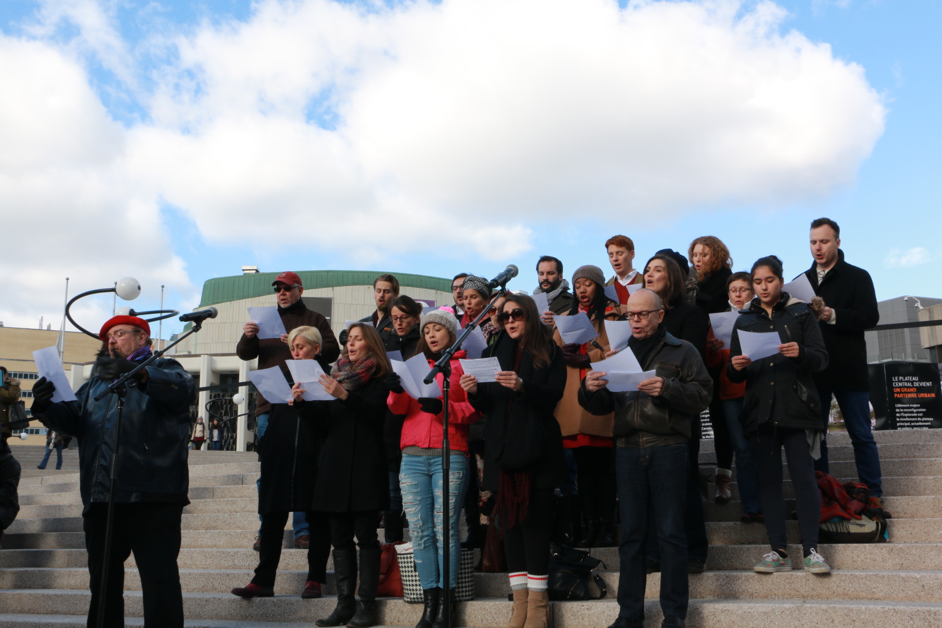 Trois jours après la vague d’attentats qu’a connu Paris, l’Esplanade de la Place des Arts a accueilli lundi midi des centaines de Montréalais venus observer une minute de silence en hommage aux victimes. Le rassemblement qui s’inscrit dans un mouvement de solidarité et de paix a également eu une pensée pour les victimes des attaques terroristes de jeudi à Beyrouth, au Liban. Le maire Denis Coderre ainsi que des personnalités politiques et des artistes ont tour à tour pris la parole afin d’exprimer leur soutien à la France.