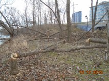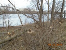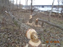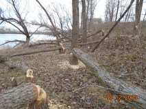 La plupart des arbres du secteur sont rongés et nombreux sont ceux qui sont à terre. Les castors ont même commencé à accumuler des branchages sur la rive, formant une petite structure.