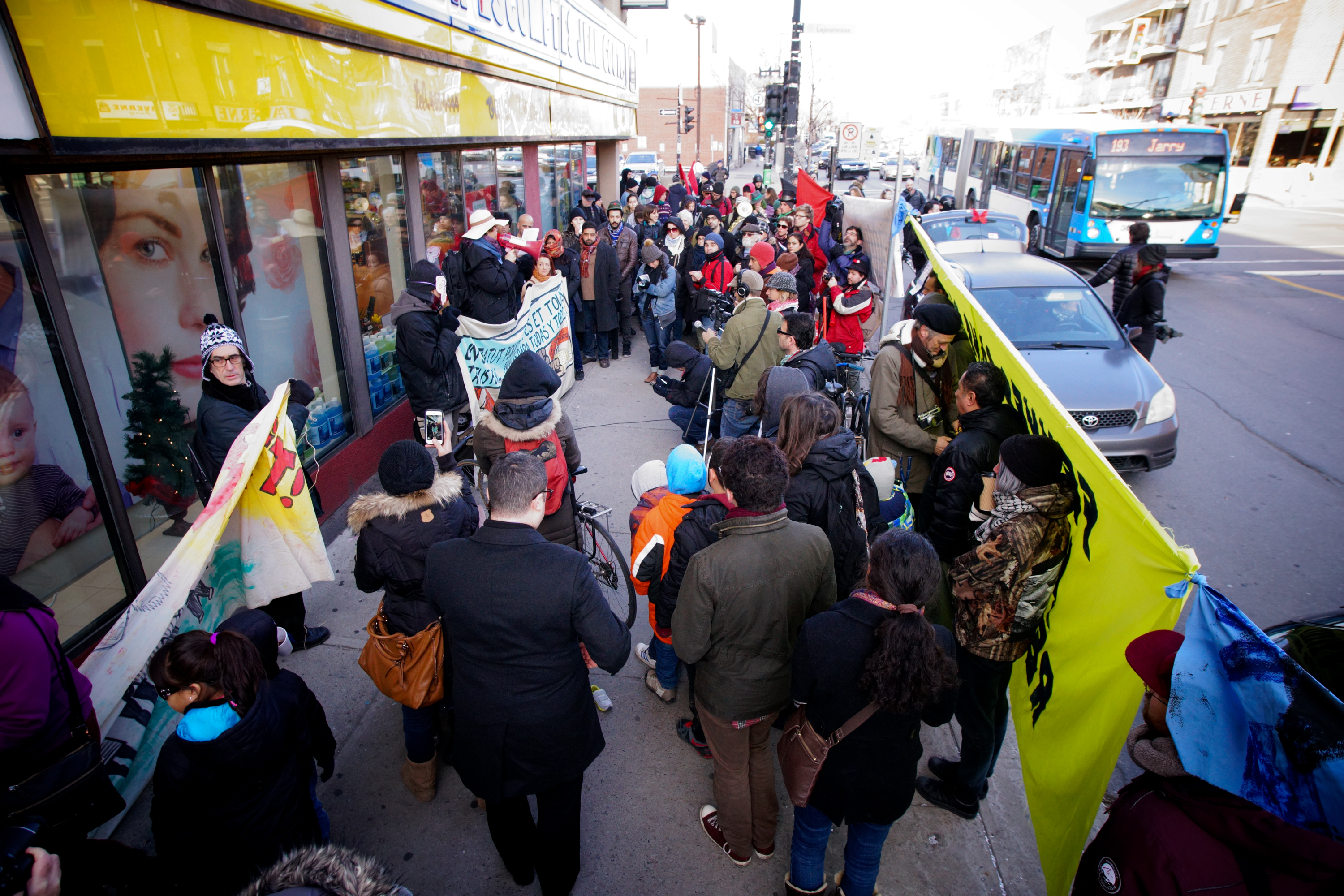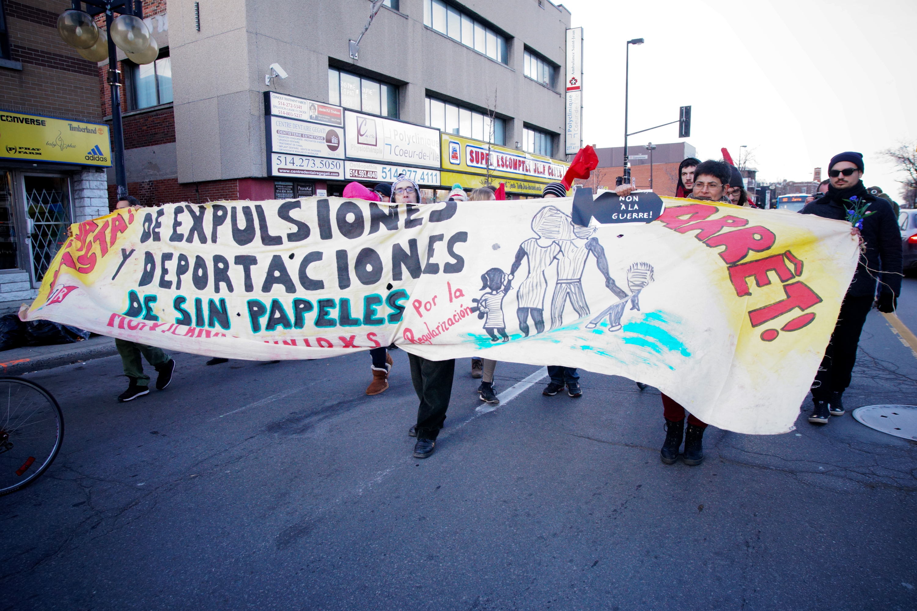 Mais les Syriens ne sont pas les seuls à avoir besoin de protection, a rappelé Mme Wong. Solidarité sans frontières réclame donc que l’accès à l’asile au Canada soit facilité par des changements dans le système de détermination du statut de réfugié. «Partout dans le monde, il y a des personnes qui fuient des situations de danger et de précarité, qui sont refusées au Canada et renvoyées vers leur pays», a commenté Mme Wong, quelques secondes avant que les manifestants commencent à chanter ensemble «Ouvrez les frontières, ouvrez les frontières».