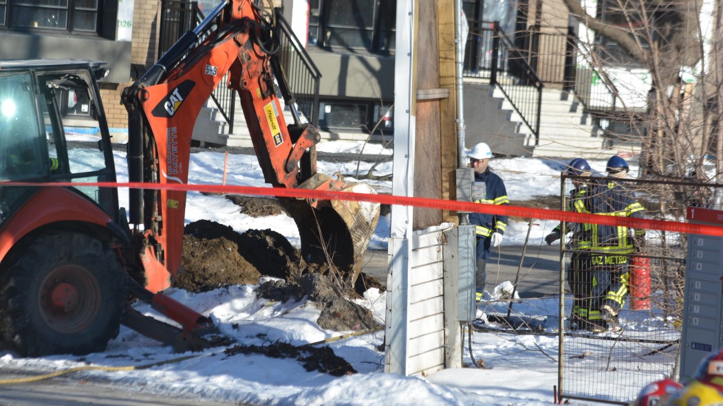 Une conduite de deux pouces a été accrochée accidentellement pendant les travaux. Environ 25 pompiers sont intervenus pour assurer la sécurité du secteur, avec trois autopompes et deux camions échelle, selon Mélanie Drouin du Service des incendies de Montréal.