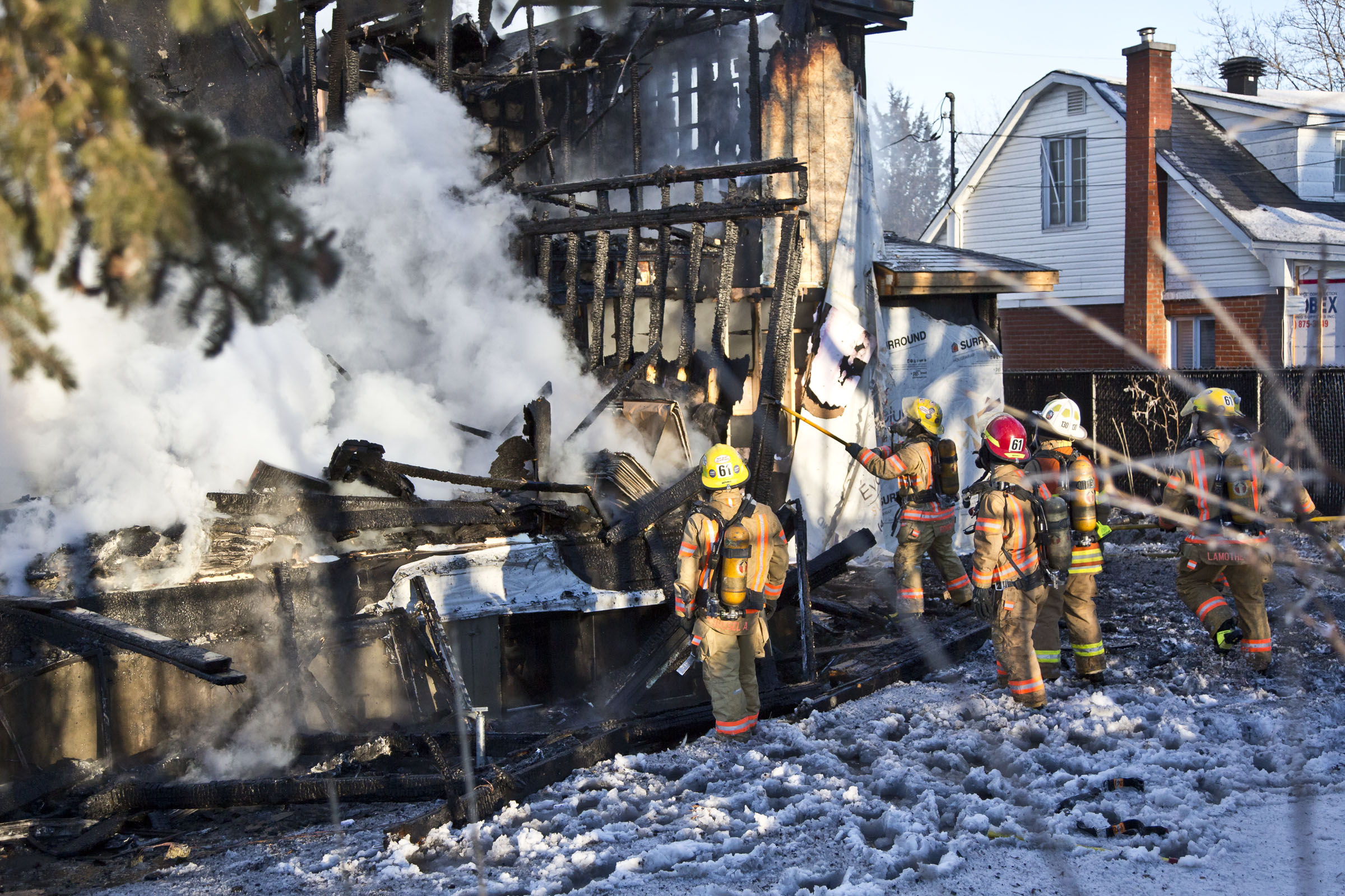 Pour une raison encore inconnue, le feu a pris naissance au rez-de-chaussée du 393, rue Laurin vers 14h40, et s’est rapidement propagé au deuxième étage en construction. Une soixantaine de pompiers ont combattu les flammes durant plus de deux heures.