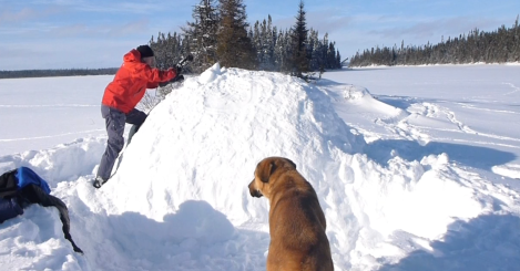 Pour bâtir un quincy (abri de neige), il faut accumuler un tas de neige tapée d’environ 7pi de haut. L’idée, c’est ensuite de creuser une salle qui soit en hauteur par rapport à l’entrée afin de bénéficier de la loi physique qui veut que la chaleur monte alors que le froid descend. «On peut obtenir une température intérieure entre 0 et -5°C même s’il fait -30°C dehors», indique l’aventurier, qui insiste sur l’importance de creuser une salle en voûte, au risque de voir l’édifice s’effondrer. Ce genre d’incident a déjà coûté la vie à plusieurs personnes. Se fabriquer un abri peut être envisageable dans certains cas précis, comme si une tempête s’annonce, mais ce n’est pas forcément l’option à privilégier quand on est en mode survie, car on gaspille alors beaucoup de temps (compter entre une heure et une journée, selon votre expérience) et on risque de ne pas entendre les secours quand on est tapi sous notre abri, ajoute Frédéric.