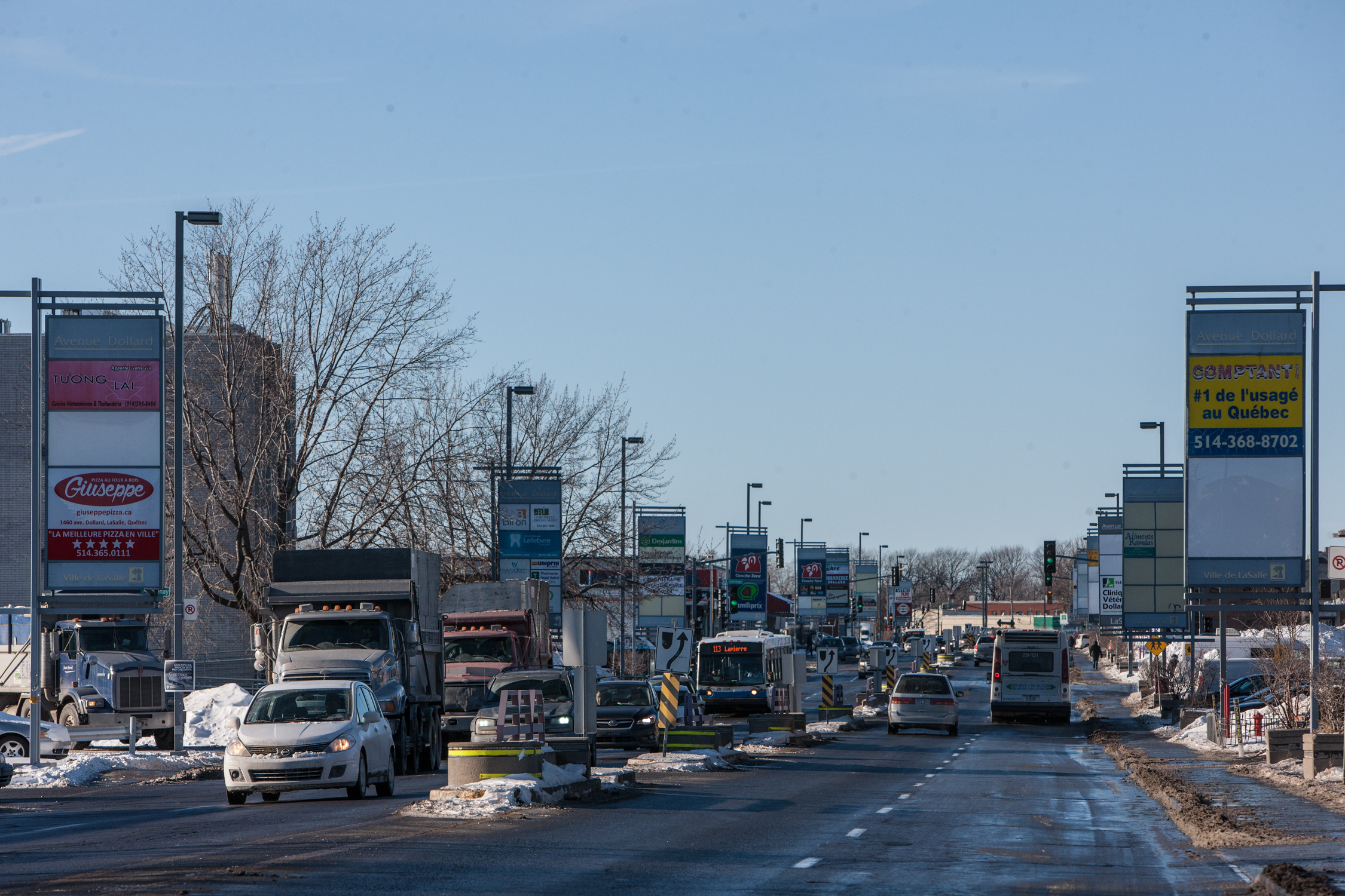 Bordée de commerces et de résidences, l’avenue Dollard accueille environ 100 000 véhicules par semaine. Les travaux sont prévus à l’été 2016, entre les rues Gloria et Jean-Brillon, dans le cadre du Programme de réfection routière artériel de la Ville de Montréal.
