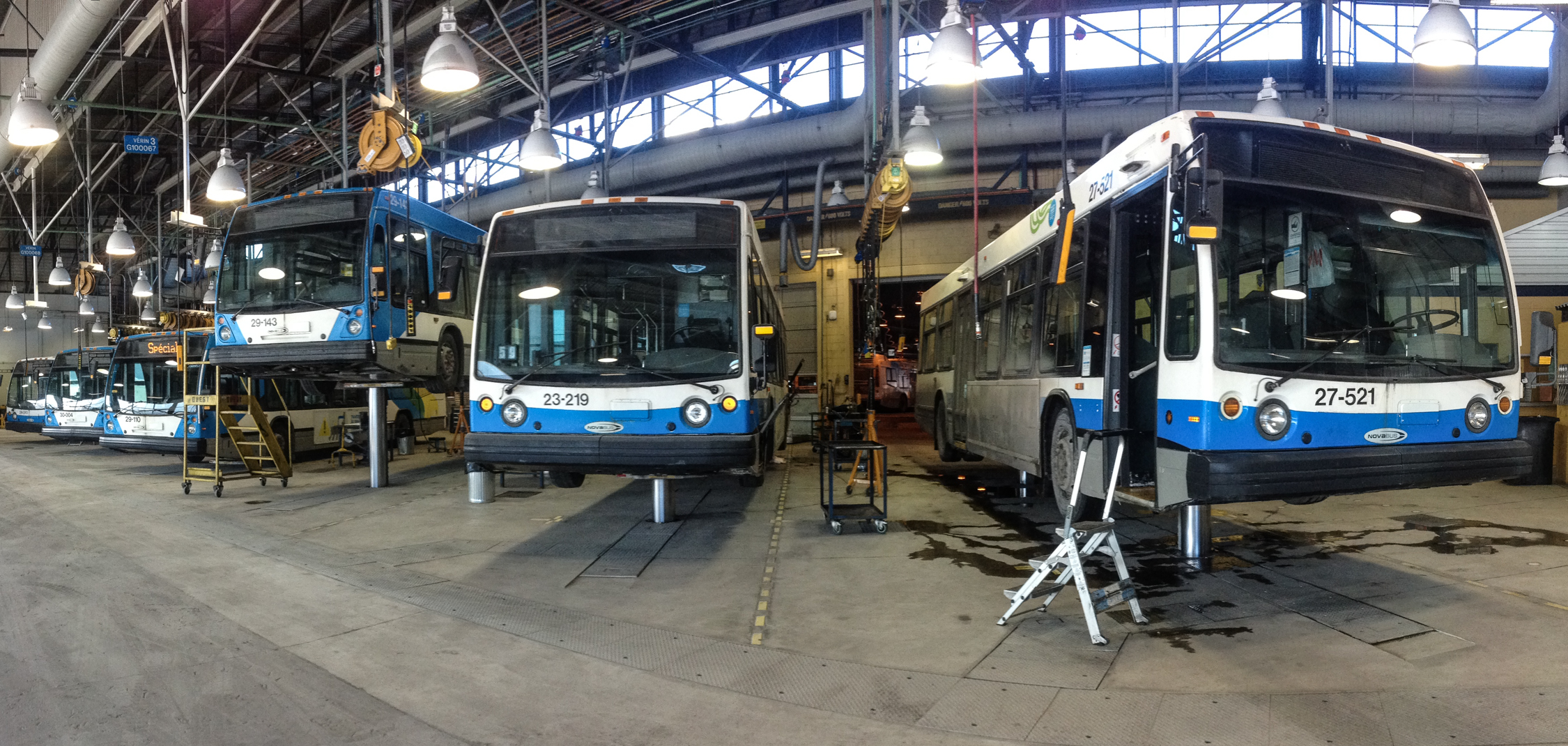 La Société de transport de Montréal (STM) investit 3,5 M$ dans le remplacement des 14 vérins hydrauliques servant à soulever les 335 autobus qui circulent quotidiennement au Centre de transport de LaSalle (CTL).
