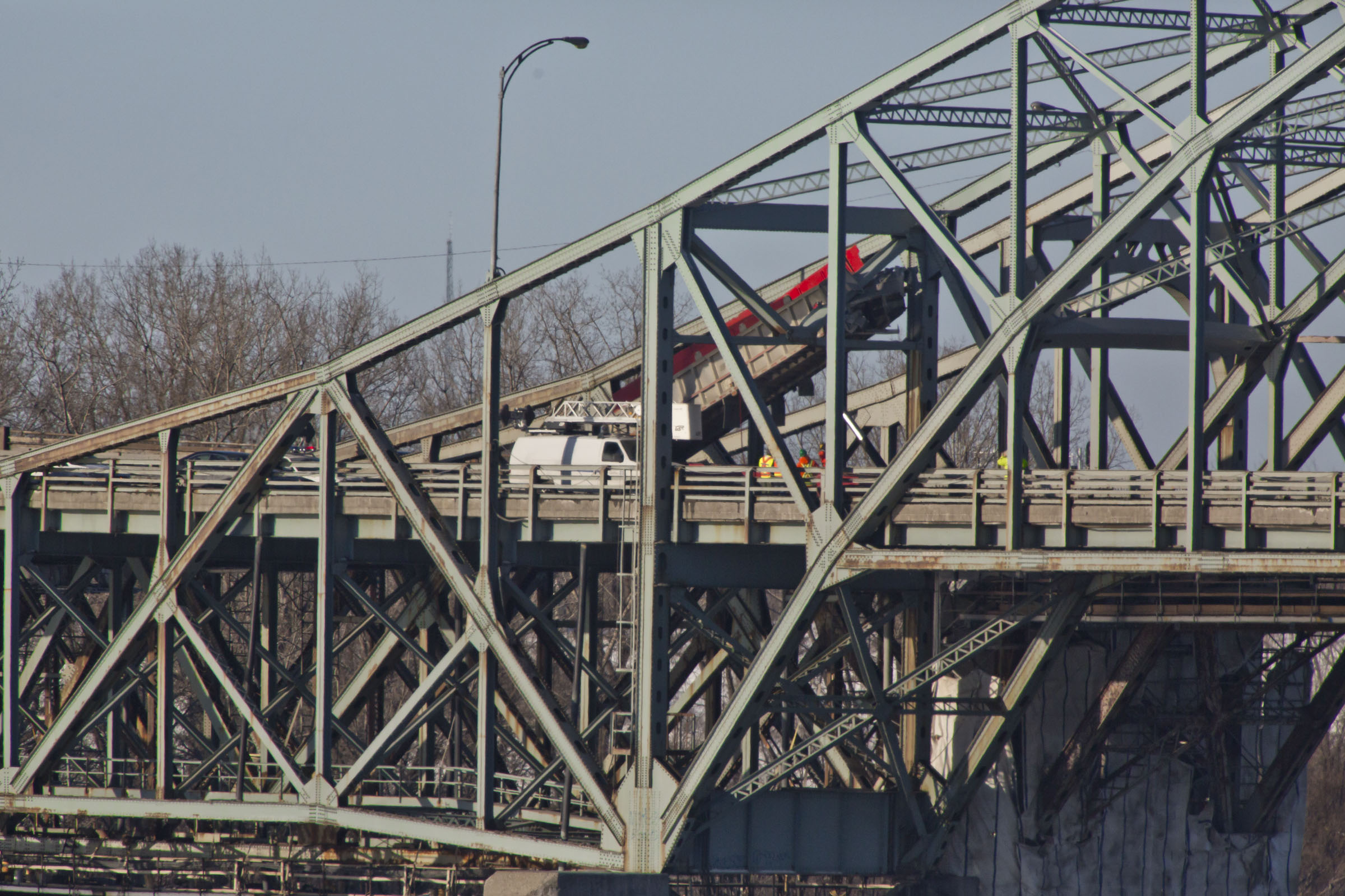 «Compte tenu de l’impact important de l’incident et du fait que c’est la structure qui enjambe toutes les voies du pont Mercier et la Voix martime, on a choisi de procéder à une inspection complète», explique Julie Paquet, de La Société Les Ponts Jacques-Cartier et Champlain Incorporée (PJCCI), qui gère la structure.
