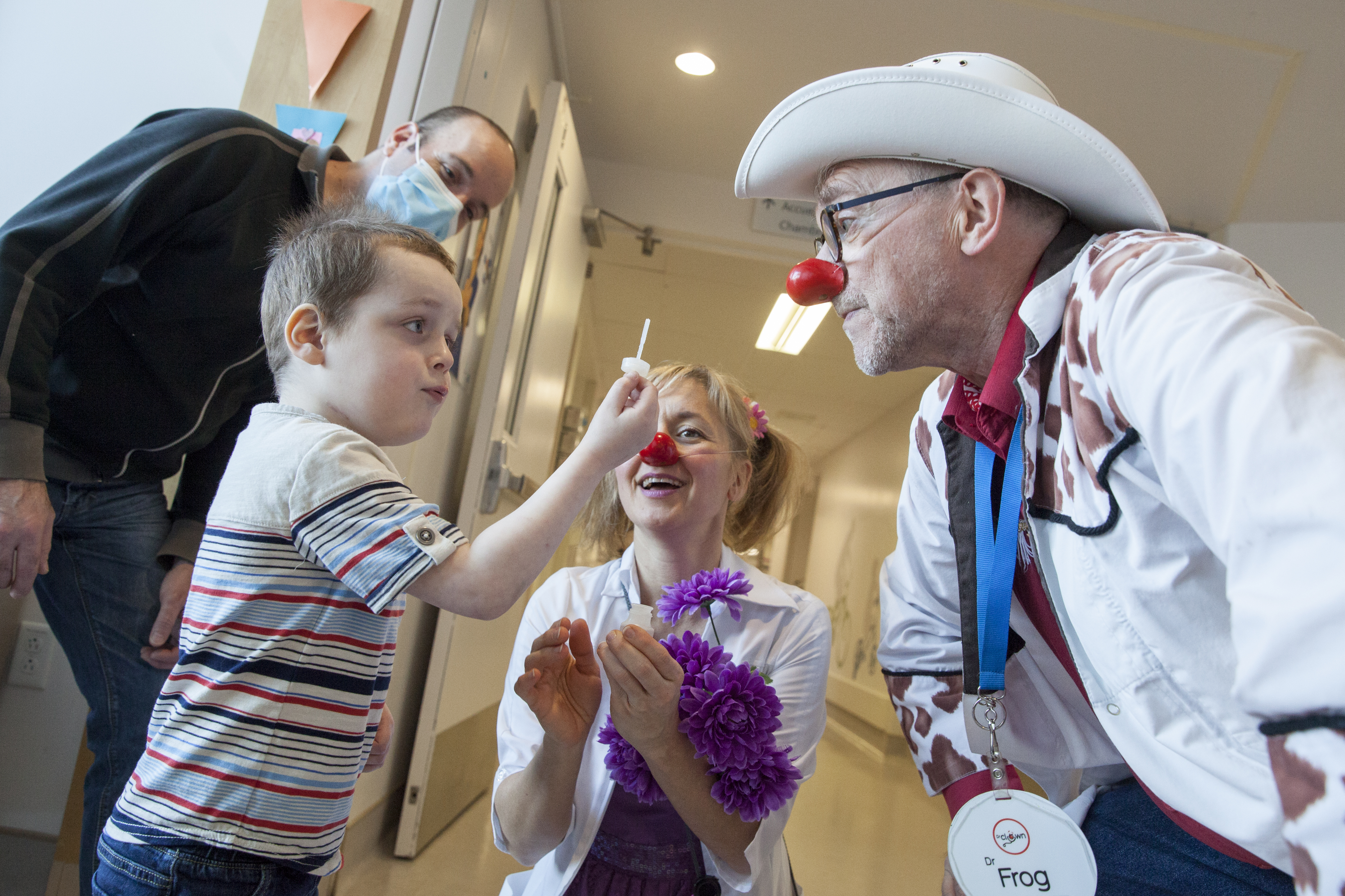 Le petit Zachary Bernier, 3 ans, venait de recevoir un diagnostic qui allait bouleverser sa vie lorsque trois coups ont frappé à la porte de sa chambre d’hôpital. Sans se douter du drame qui venait de se produire, des docteurs pas comme les autres, les Dr Clowns, sont entrés et ont rapidement transformer les larmes de la famille en éclats de rire.
