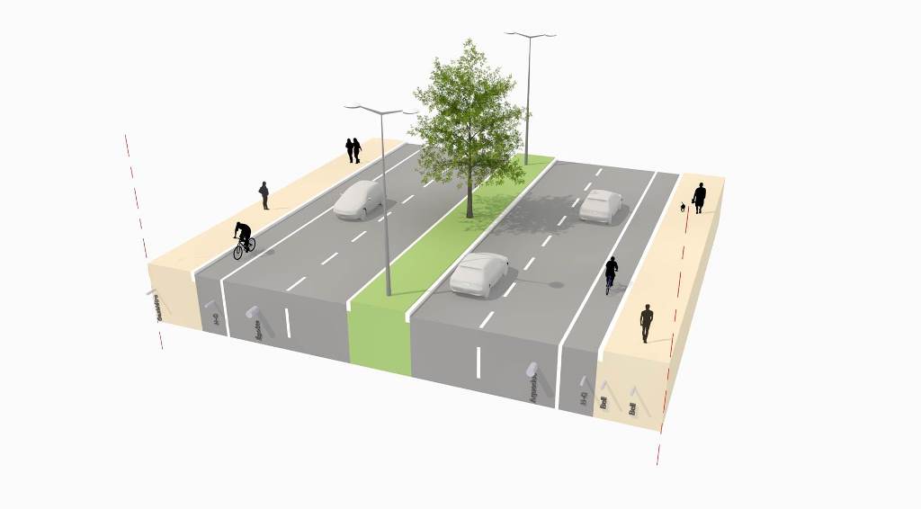 Le scénario prévoit quatre voies de circulation, dont deux dans chaque direction. Il y aura deux voies plus larges pour les camions et les autobus, et deux voies régulières.