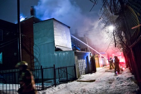 Les flammes ont pris naissance dans la cuisine du rez-de-chaussée du 5493, boulevard Saint-Michel vers 19h20, pour se propager rapidement par l’extérieur au reste du bâtiment et à l’entretoit.