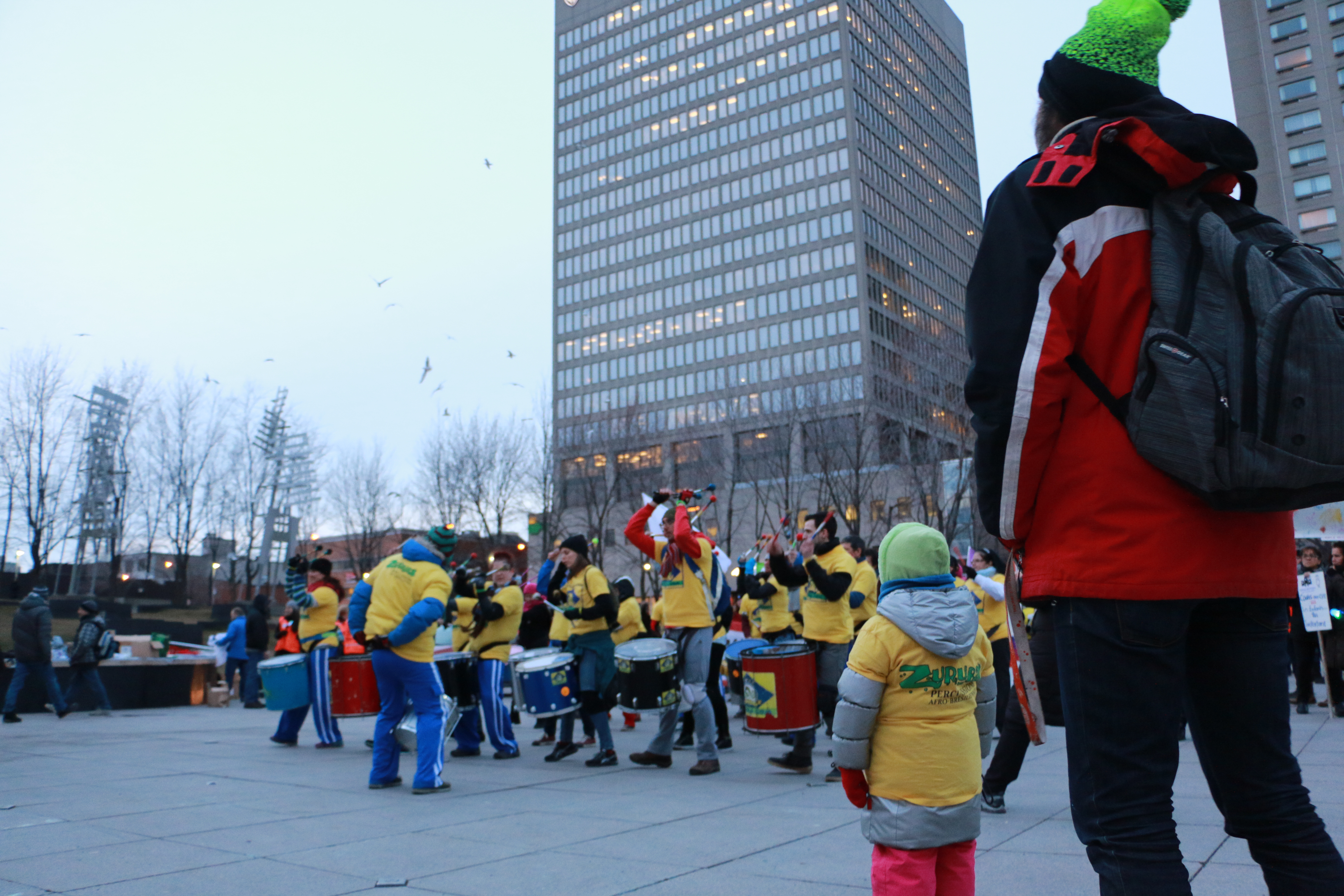 La Confédération des syndicats nationaux (CSN) a organisé une marche aux lampions mardi soir afin de dénoncer les compressions dans le financement des services de garde de la province. Le cortège est parti de la place Émilie-Gamelin pour se diriger vers les bureaux du premier ministre Philippe Couillard, sur l’avenue McGill College.