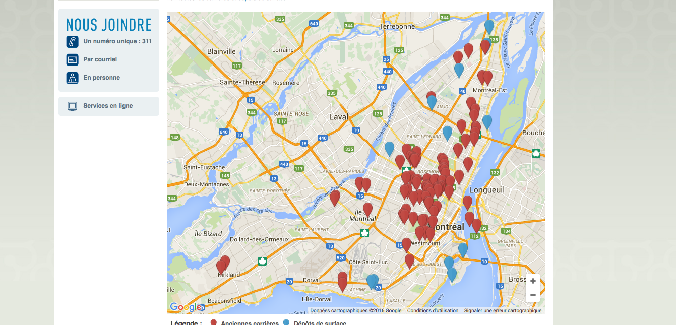 La Ville n’a pas mené de forages afin de déterminer si ces sites sont contaminés ou de connaître l’étendue précise de ces sites. La carte ne montre que l’emplacement approximatif d’une quarantaine des 94 anciens sites d’enfouissement et carrières.