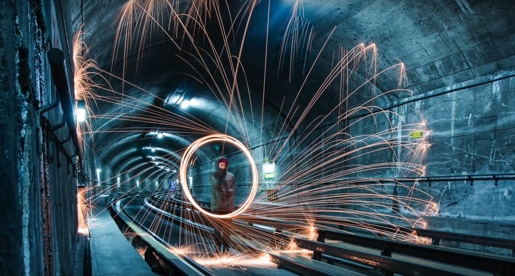 On y voyait deux individus visiter, entre autres, des endroits interdits au public. Ils marchaient sur les voies et un des deux jeunes individus avaient même allumés des pièces pyrotechniques à l’intérieur d’un tunnel.
