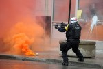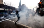 Les policiers ont donné un ordre de dispersion, puis ont continué à jouer au chat et à la souris avec des petits groupes de manifestants dans le centre-ville.