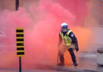 Des manifestants cagoulés ont lancé des bombes fumigènes, des pièces pyrotechniques et des roches contre les forces antiémeutes près du poste de quartier 20. Les forces de l’ordre ont quant à eux utilisé des irritants chimiques pour écarter les manifestants. Un vent de panique a alors pris des passants et plusieurs manifestants, qui ont fui par les ruelles du centre-ville alors que les pétards continuaient de retentir.