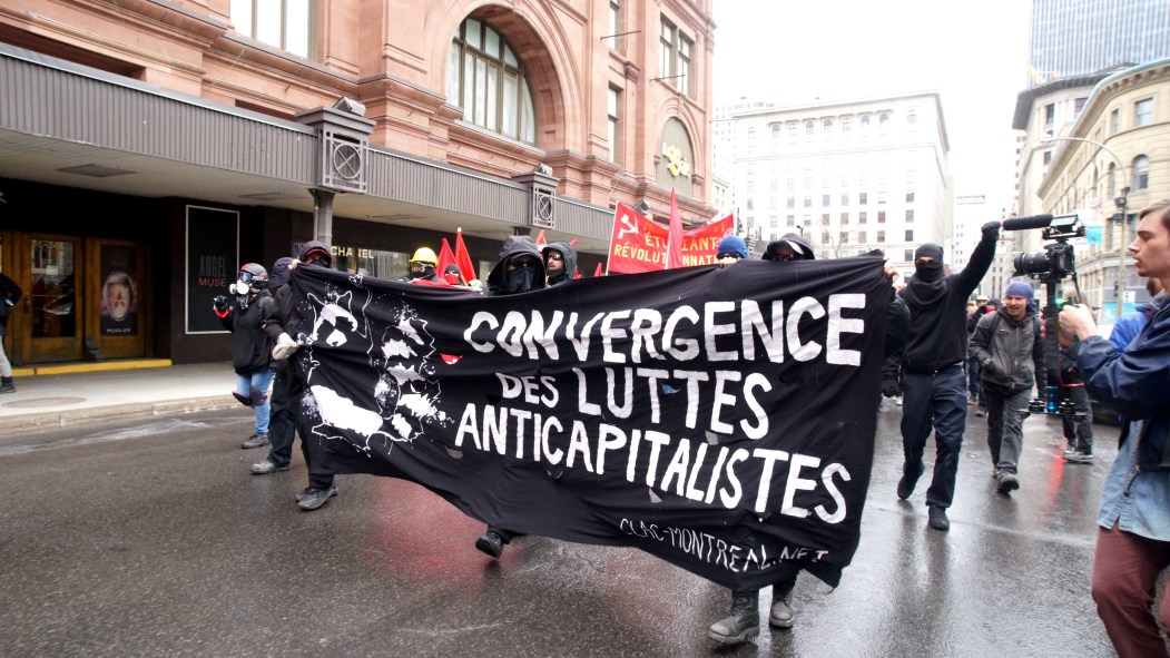 La police disperse une manifestation anticapitaliste au centre-ville de Montréal