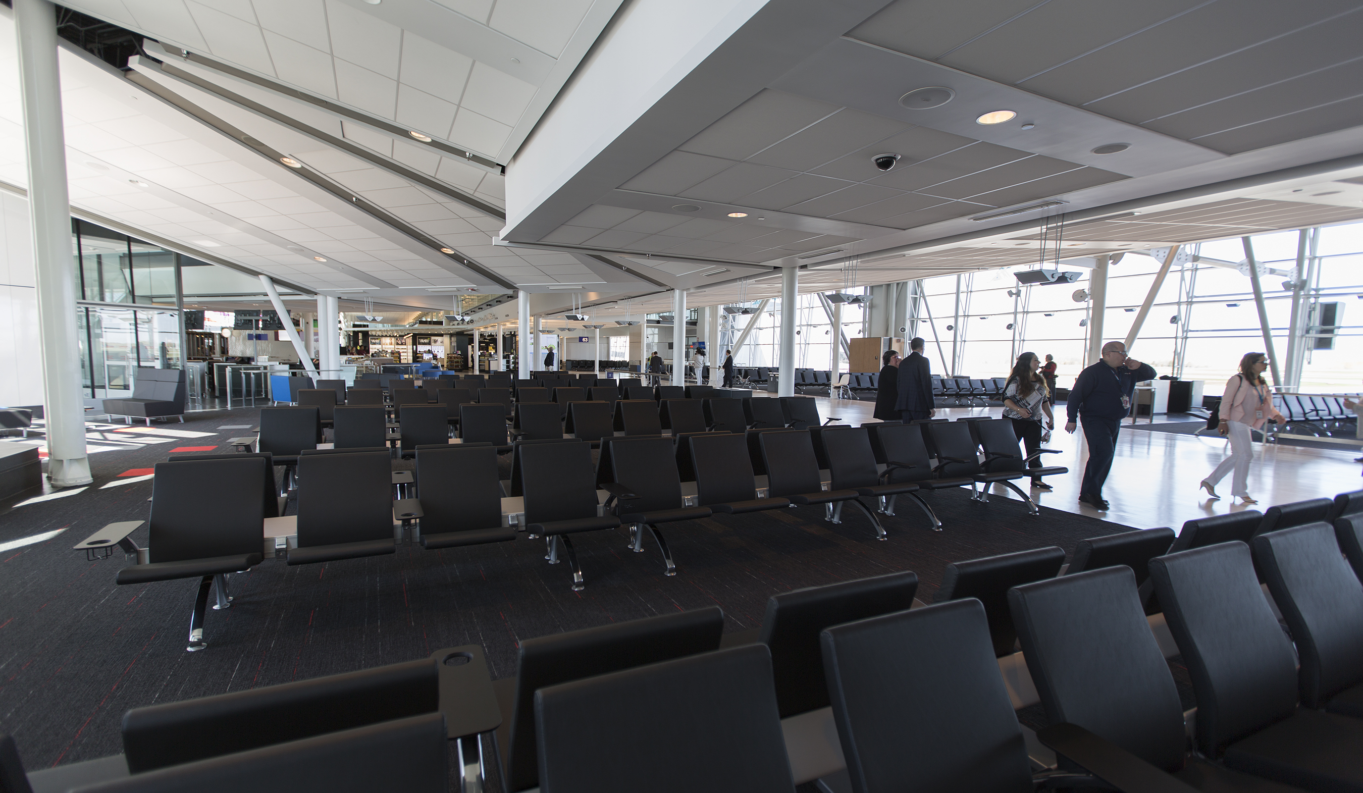 Œuvres d’arts réalisées par les Montréalais Manon De Pauw et Alain Paiement, vitres colorées suspendus au plafond rappelant les vitraux de la métropole, aires de détente, prises de courant et ports USB pour chacun des 1 000 nouveaux sièges, la direction d’Aéroports de Montréal (ADM) n’a pas lésiné pour mettre au goût du jour ses installations dorénavant plus aérées et spacieuses.