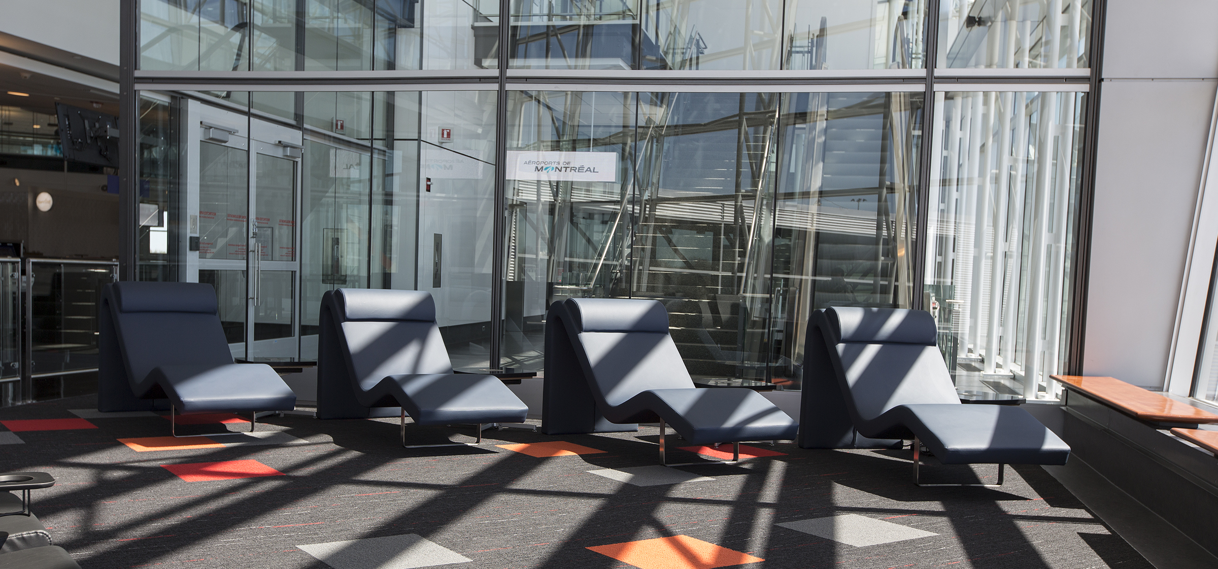 Œuvres d’arts réalisées par les Montréalais Manon De Pauw et Alain Paiement, vitres colorées suspendus au plafond rappelant les vitraux de la métropole, aires de détente, prises de courant et ports USB pour chacun des 1 000 nouveaux sièges, la direction d’Aéroports de Montréal (ADM) n’a pas lésiné pour mettre au goût du jour ses installations dorénavant plus aérées et spacieuses.