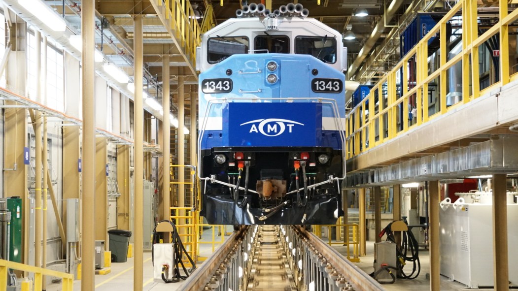 Dans un atelier de service, une voie ferrée a été surélevée afin de permettre aux employés de l’AMT d’examiner les dessous des trains. Sur cette même voie, il est possible de remplacer des composantes du système de climatisation, de faire une vidange d’huile et de changer une roue, dont la durée de vie est en moyenne de cinq à six ans. Cette dernière tâche était, auparavant, effectuée en l’espace de deux jours puisque le train devait être décomposé. Elle le sera en moins de deux heures dans le nouveau centre d’entretien.