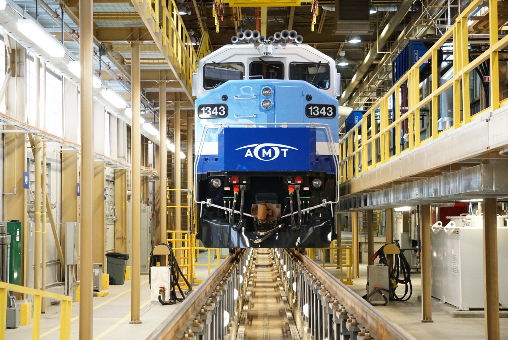 Dans un atelier de service, une voie ferrée a été surélevée afin de permettre aux employés de l’AMT d’examiner les dessous des trains. Sur cette même voie, il est possible de remplacer des composantes du système de climatisation, de faire une vidange d’huile et de changer une roue, dont la durée de vie est en moyenne de cinq à six ans. Cette dernière tâche était, auparavant, effectuée en l’espace de deux jours puisque le train devait être décomposé. Elle le sera en moins de deux heures dans le nouveau centre d’entretien.