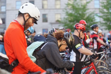 À 18h30, les cyclistes ont quitté la Place d’Armes, dans le Vieux-Montréal, pour entamer un trajet de 5,5 km.