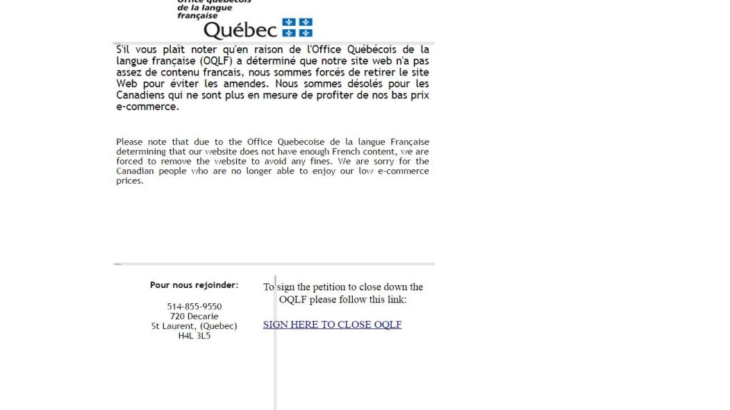 Lorsqu’on se rend sur son site, un lien nous envoie vers une pétition pour l’abolition de l’OQLF.