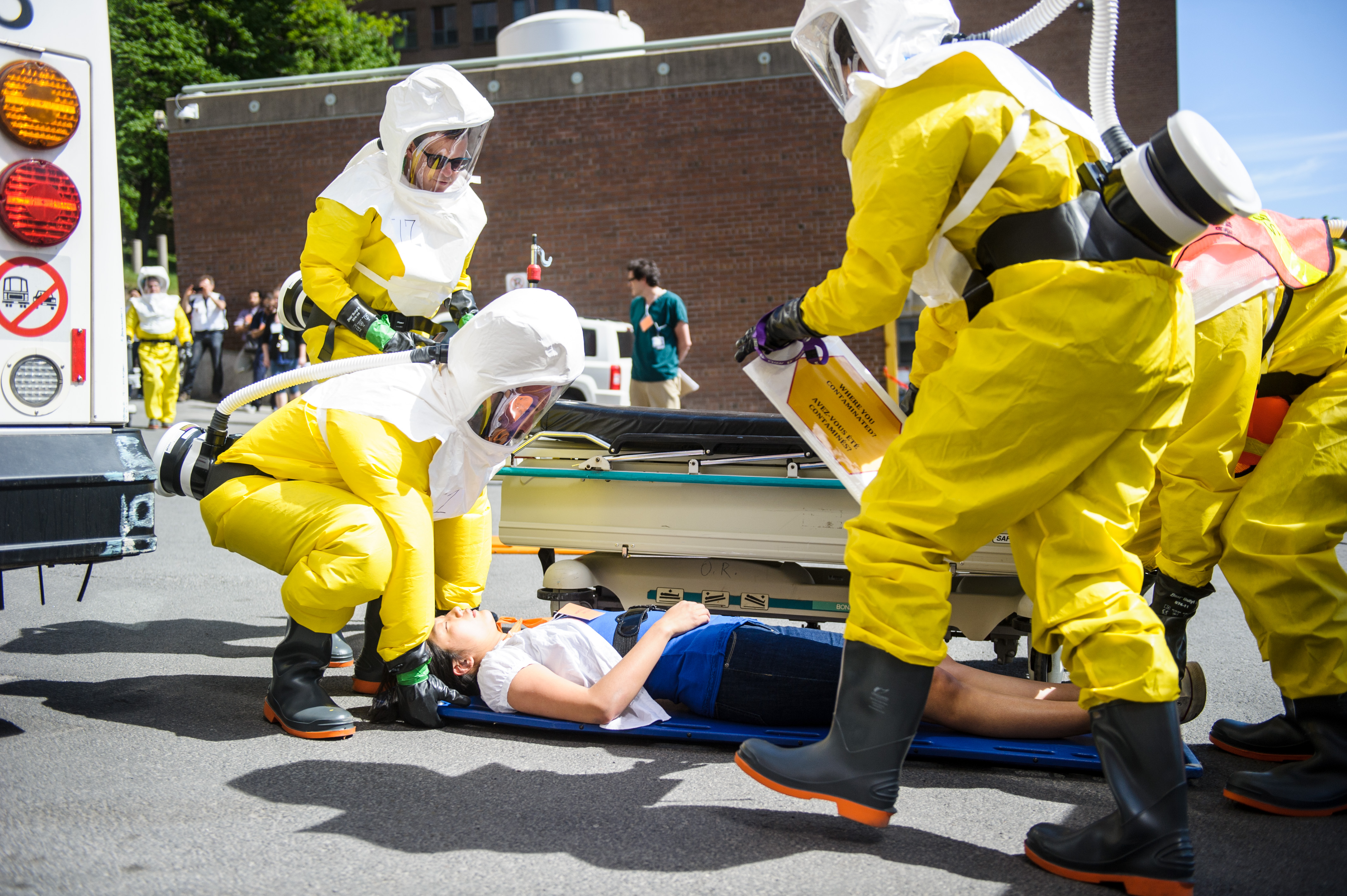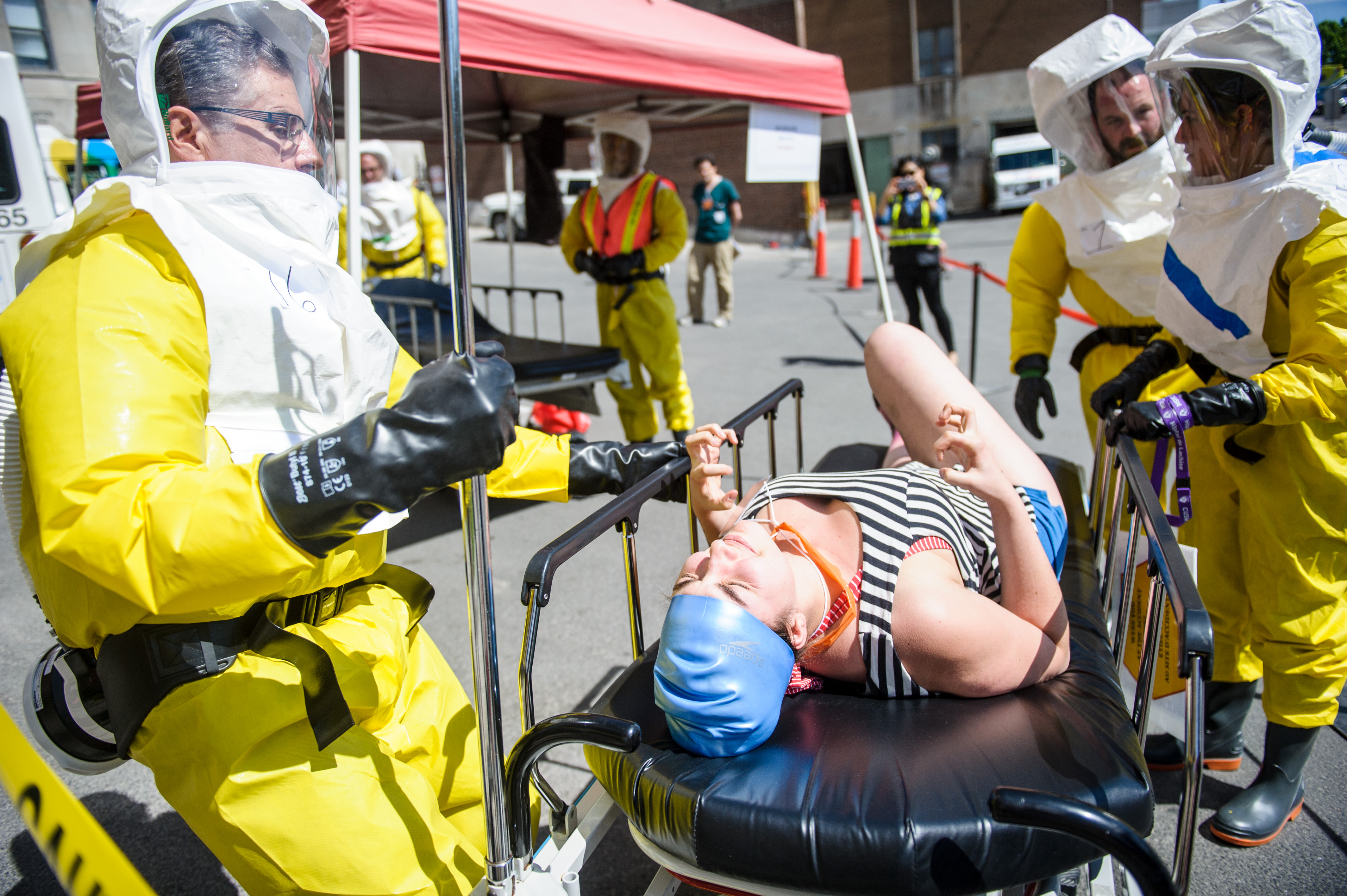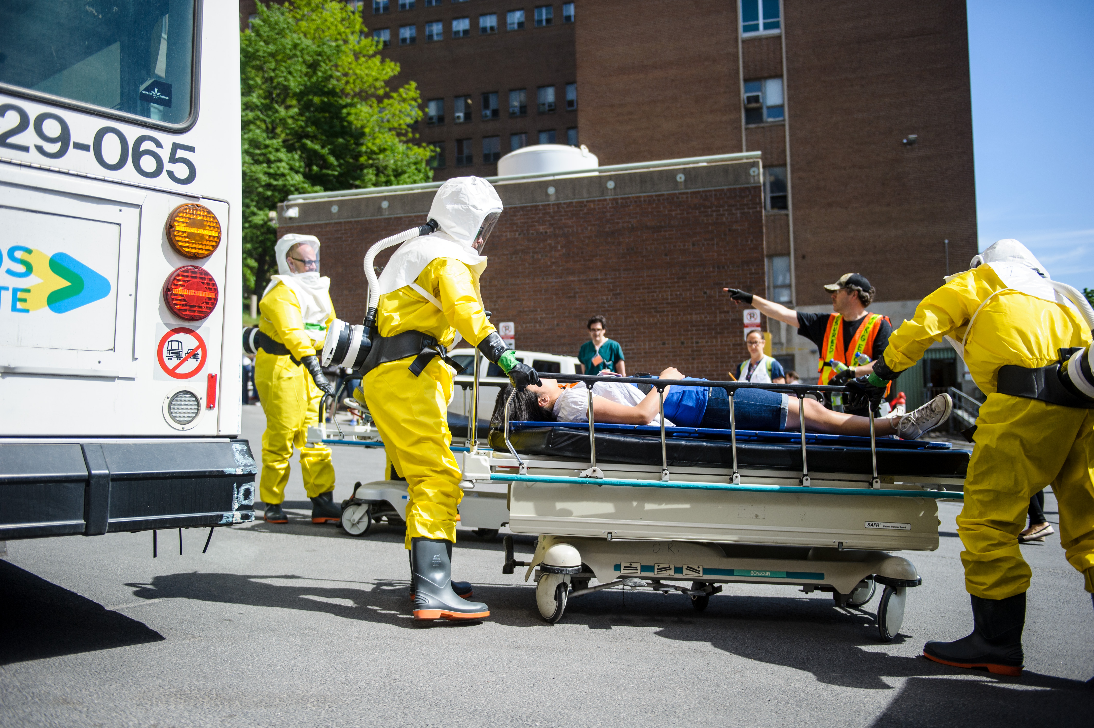 Pas moins de 75 professionnels de la santé ont été mobilisés à l’Hôpital général de Montréal afin de tester la procédure de décontamination ainsi qu’un outil de triage électronique. La mobilisation de l’ensemble des services de l’hôpital a aussi été évaluée, de même que les communications en temps réel.