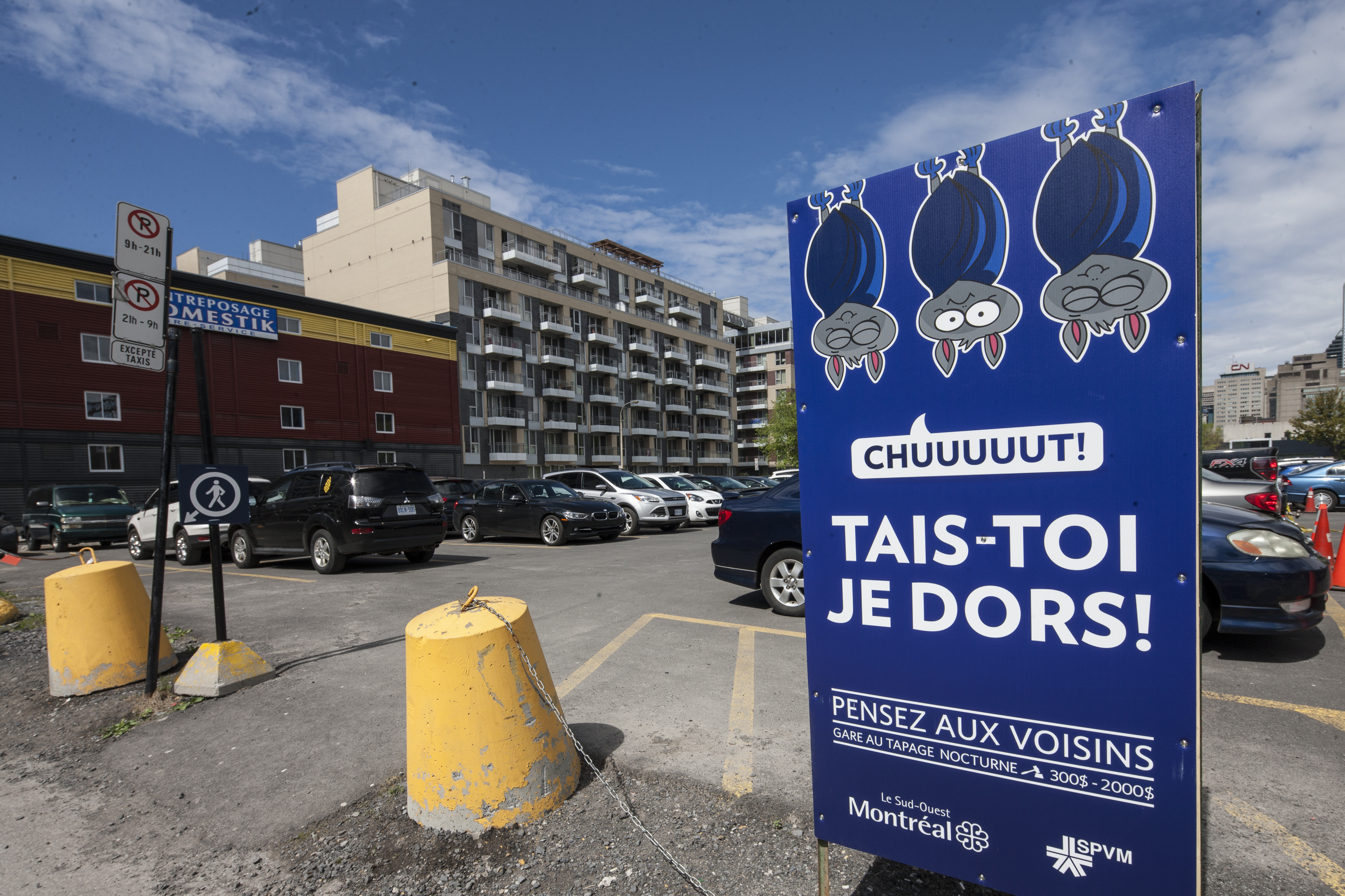 L’arrondissement a lancé en mai une campagne contre le tapage nocturne. Des affiches claironnant le message «Tais-toi, je dors!» ont été installées à des endroits ciblés, dont le secteur de la New City Gas. Il y en a aussi sur les rues Notre-Dame, Monk, du Centre et Wellington où l’on trouve des bars et des restaurants. L’affiche rappelle que les citoyens et commerces qui enfreignent le règlement sur le respect, le civisme et la propreté, qui englobe les problèmes de bruit, sont passibles d’une amende allant de 300$ à 2000$.