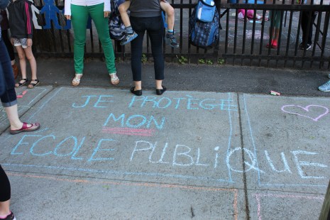Pour cette dernière édition, environ 150 parents et enfants se sont alignés symboliquement devant les grilles de l’école Saint-Jean-de-Brébeuf, dans l’arrondissement Rosemont—La-Petite-Patrie.