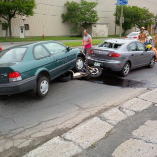 MONTRÉAL – Un carambolage impliquant trois voitures et une motocyclette est survenu sur la rue Dickson, dans l’arrondissement Hochelaga-Maisonneuve à Montréal, dimanche soir.